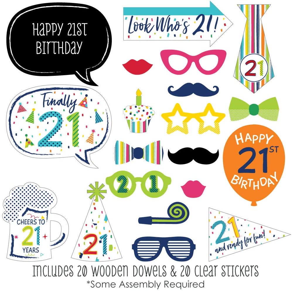 21st Birthday - Cheerful Happy Birthday - Colorful Twenty-First Birthday Party Photo Booth Props Kit - 20 Count is backordered and will ship as soon as it is back in stock.