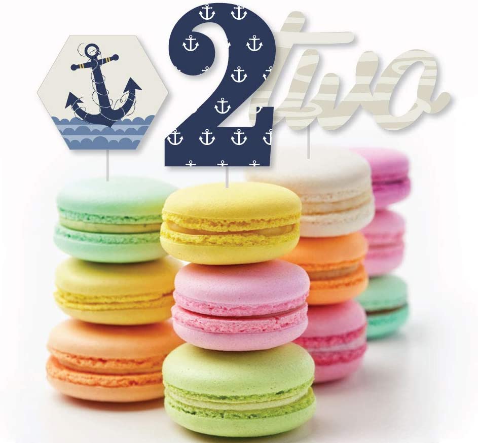 • SECOND BIRTHDAY PARTY DECORATIONS: 2nd Birthday Ahoy - Nautical DIY shaped cut outs are printed with wording and themed art on one side and a coordinating pattern on the back, so they are perfect for centerpieces or mini bunting banners. Hole-punch them and string together as a birthday party mini banner, use as craft tags, scatter along your tables like table confetti or add to toothpicks as cupcake toppers. Anchor paper shaped cut outs will make a statement however you choose to use them.