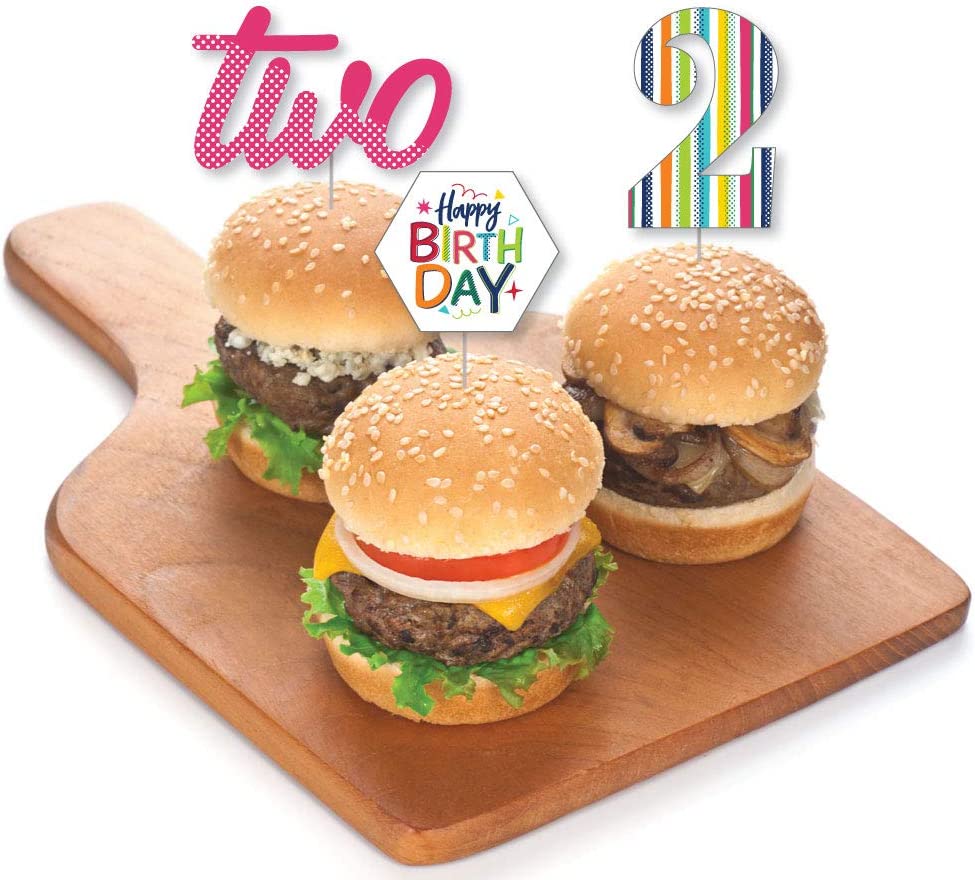 2nd Birthday - Cheerful Happy Birthday - Dessert Cupcake Toppers - Colorful Second Birthday Party Clear Treat Picks - Set of 24 is backordered and will ship as soon as it is back in stock.