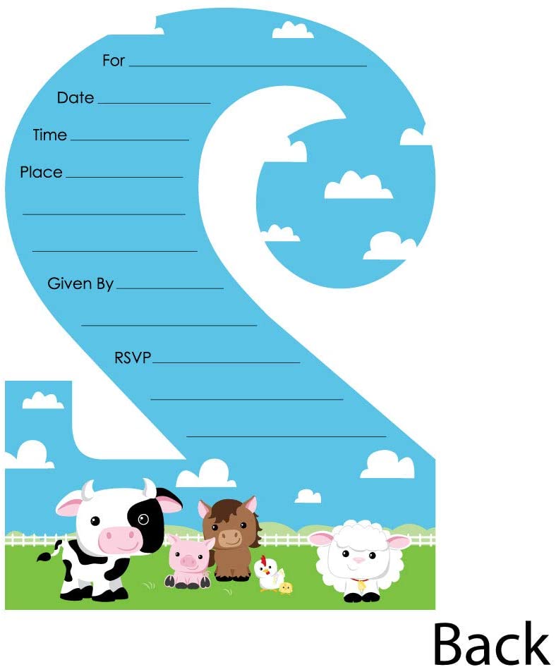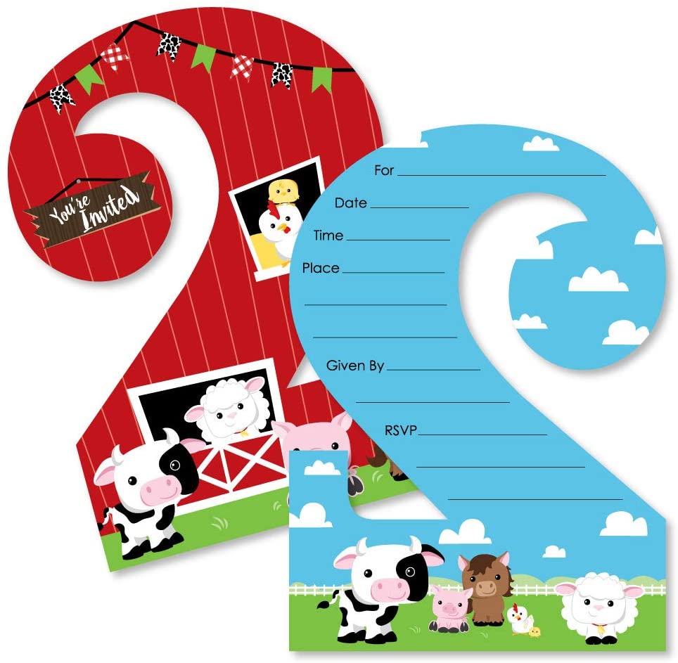 2nd Birthday Farm Animals - Shaped Fill-In Invitations - Barnyard Second Birthday Party Invitation Cards with Envelopes - Set of 12 is backordered and will ship as soon as it is back in stock.