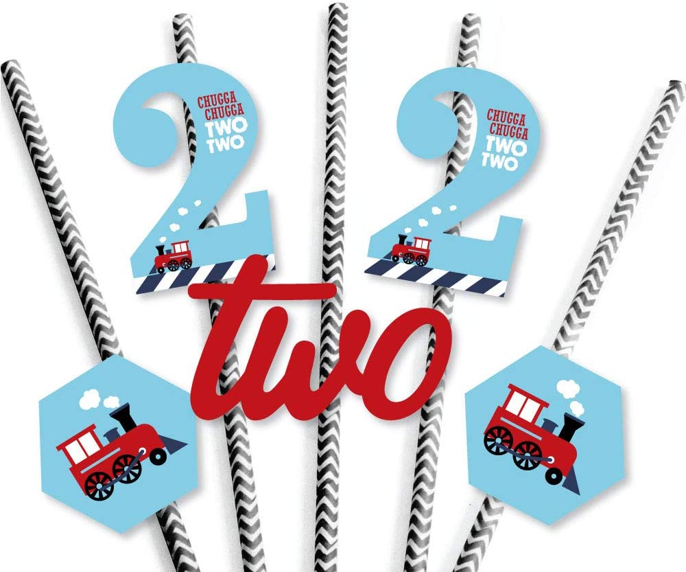 2nd Birthday Railroad Party Crossing - Paper Straw Decor - Steam Train Second Birthday Party Striped Decorative Straws - Set of 24 is backordered and will ship as soon as it is back in stock.