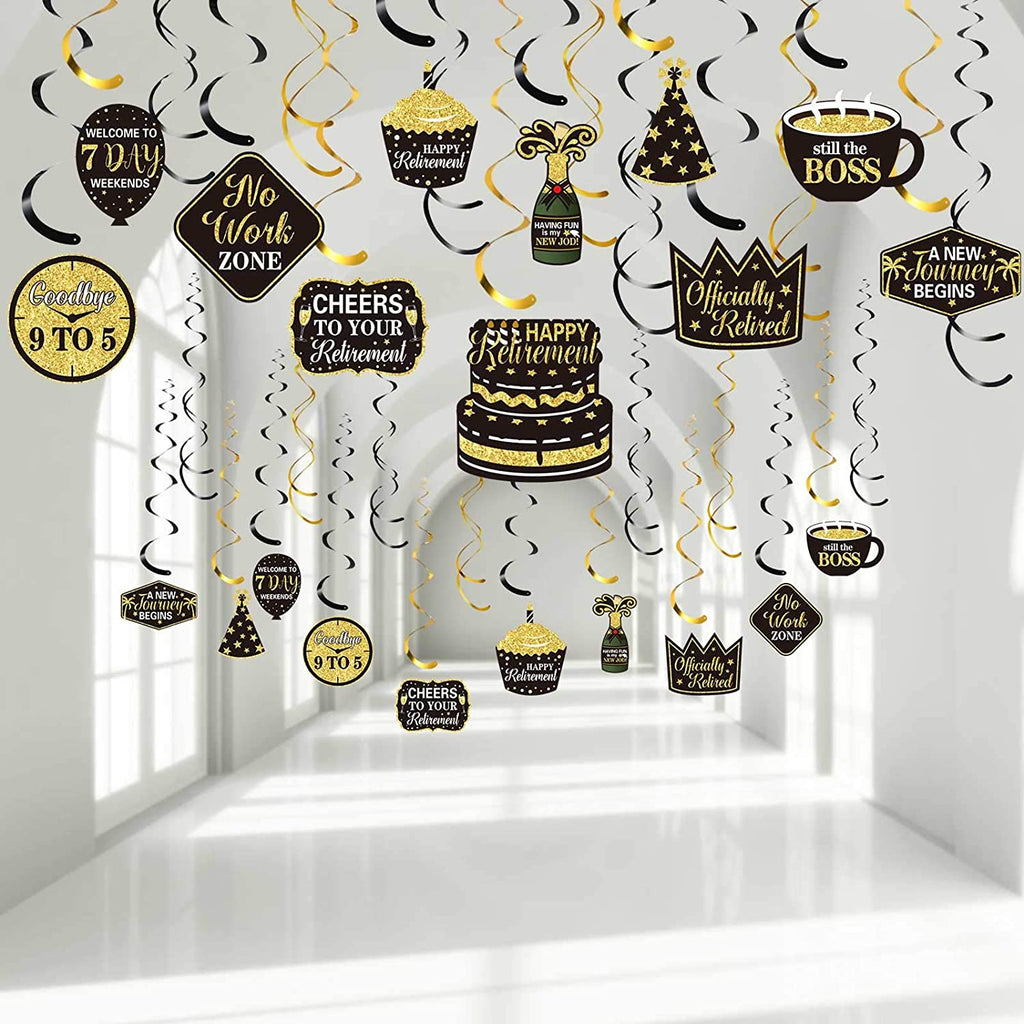30 Pieces Retirement Party Hanging Swirls Decorations is backordered and will ship as soon as it is back in stock.