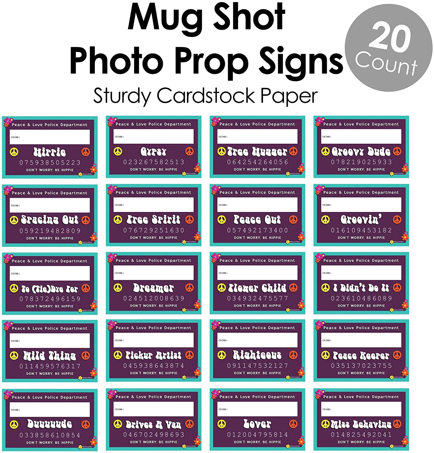 60's Hippie - Party Mug Shots - Photo Booth Props 1960s Groovy Party Mugshot Signs - 20 Count is backordered and will ship as soon as it is back in stock.