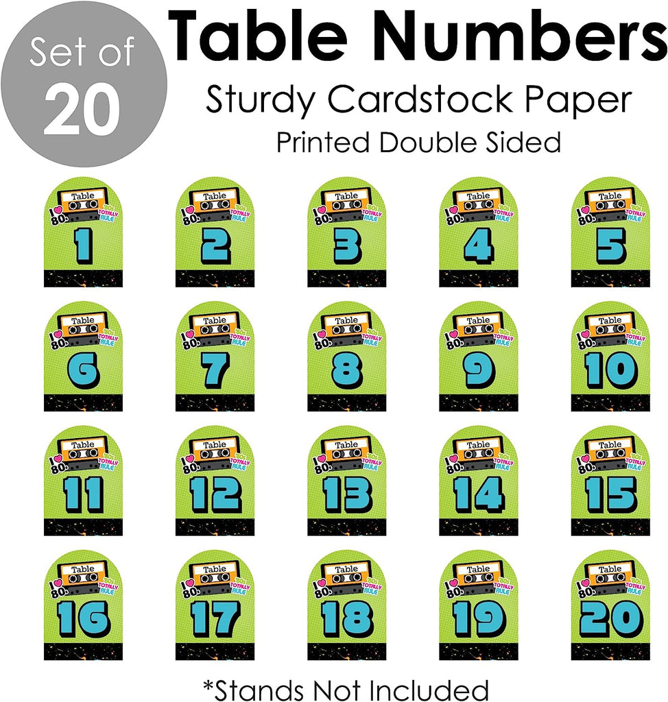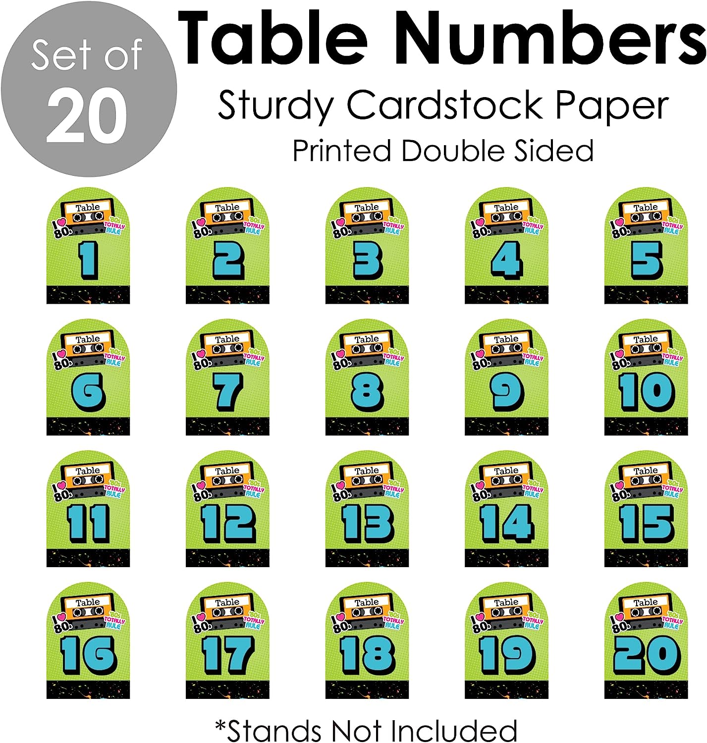 80’s Retro - Totally 1980s Party Double-Sided 5 x 7 inches Cards - Table Numbers - 1-20 is backordered and will ship as soon as it is back in stock.