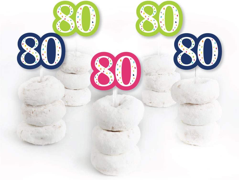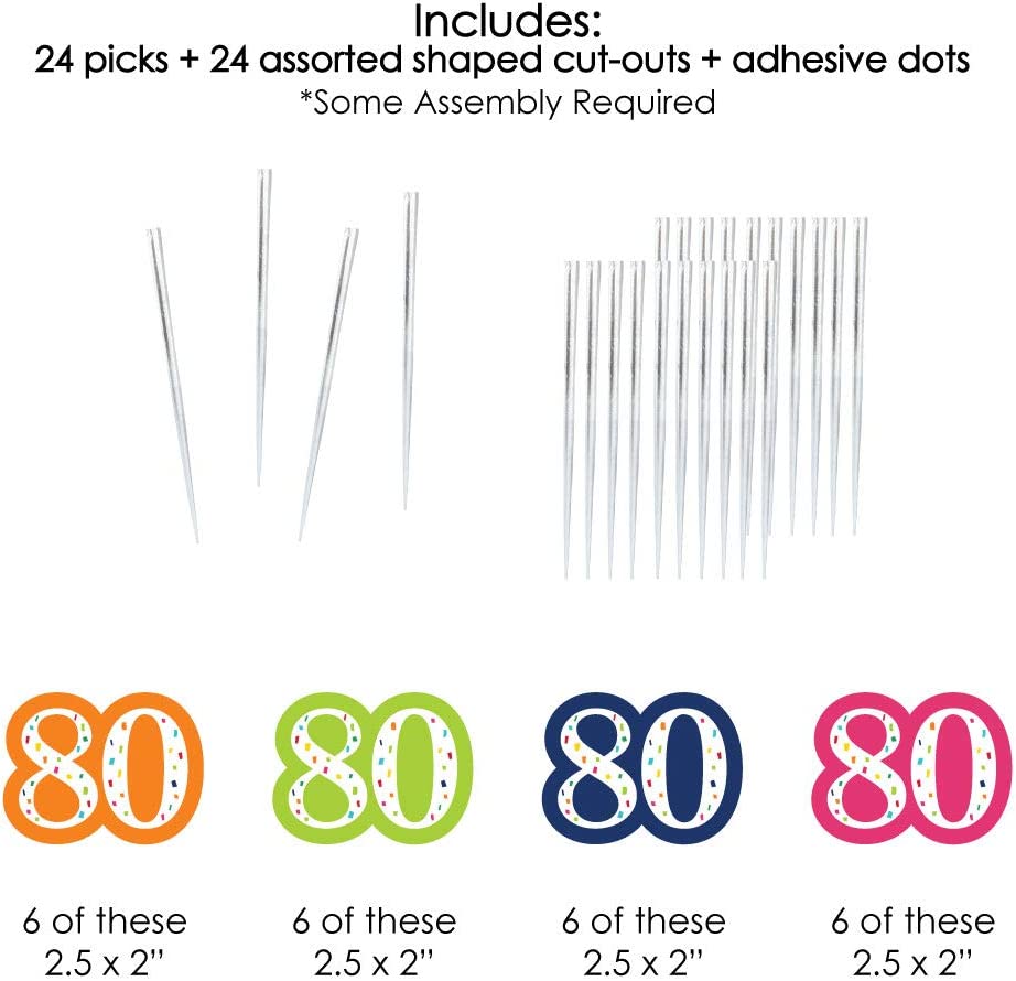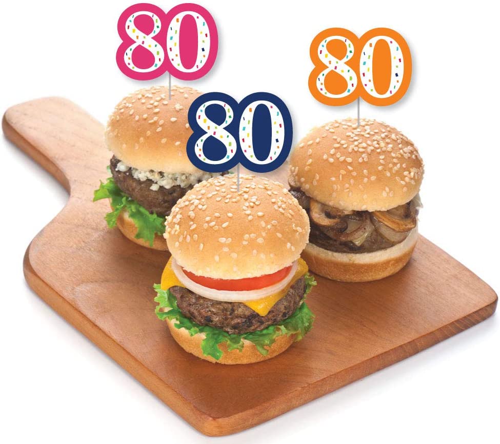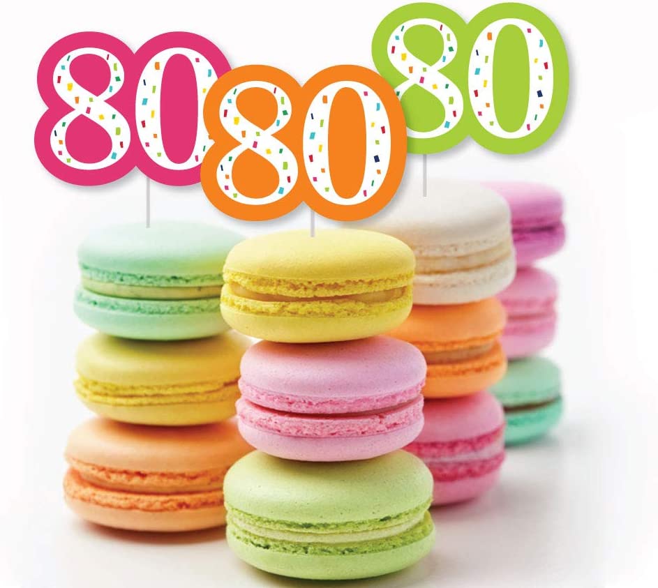 80th Birthday - Cheerful Happy Birthday - Dessert Cupcake Toppers - Colorful Eightieth Birthday Party Clear Treat Picks - Set of 24 is backordered and will ship as soon as it is back in stock.