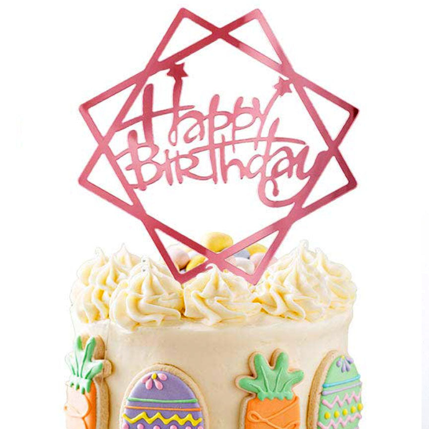 Gold Acrylic 'Happy Birthday' cake topper measures approximately 11.5cm (high) x 11.5cm (wide) with spike measuring 6cm.