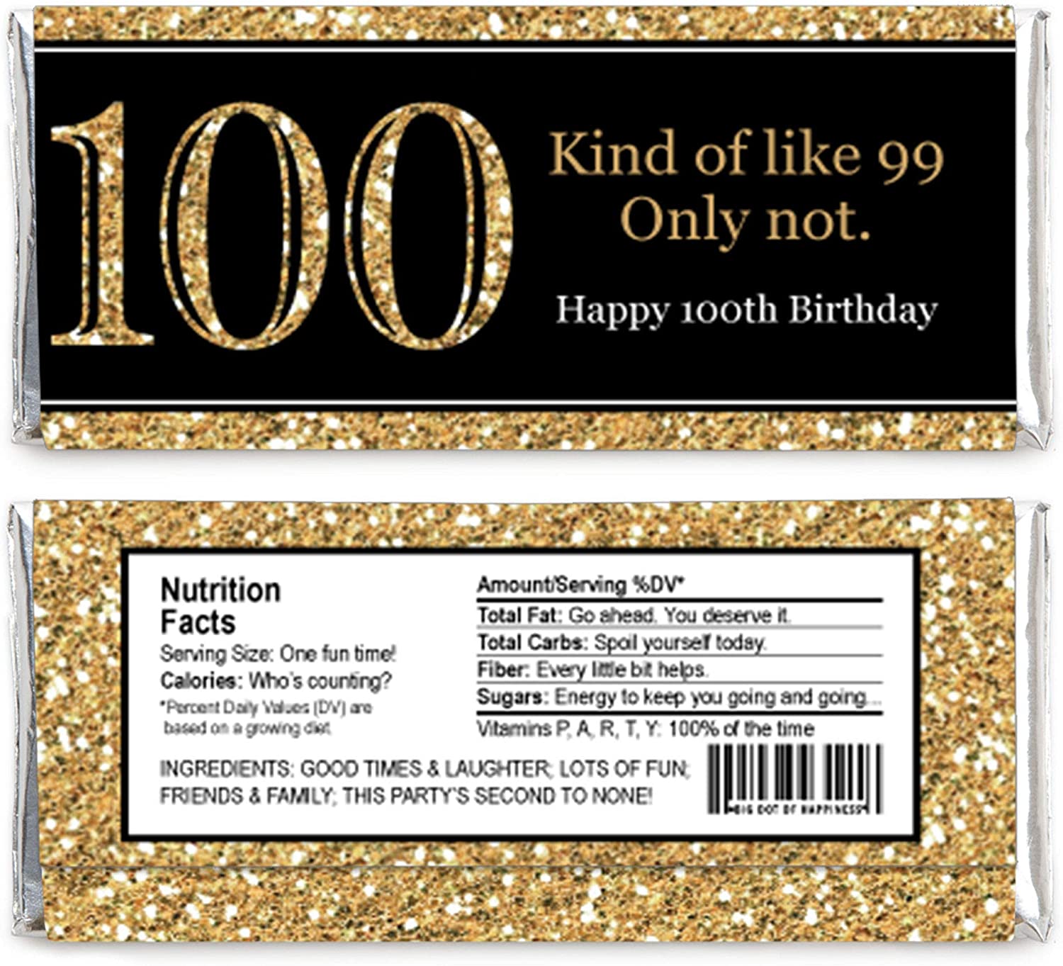 Adult 100th Birthday - Gold - Candy Bar Wrappers Birthday Party Favors - Set of 24 is backordered and will ship as soon as it is back in stock.