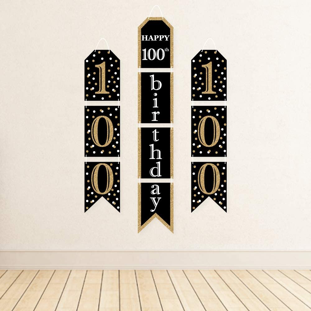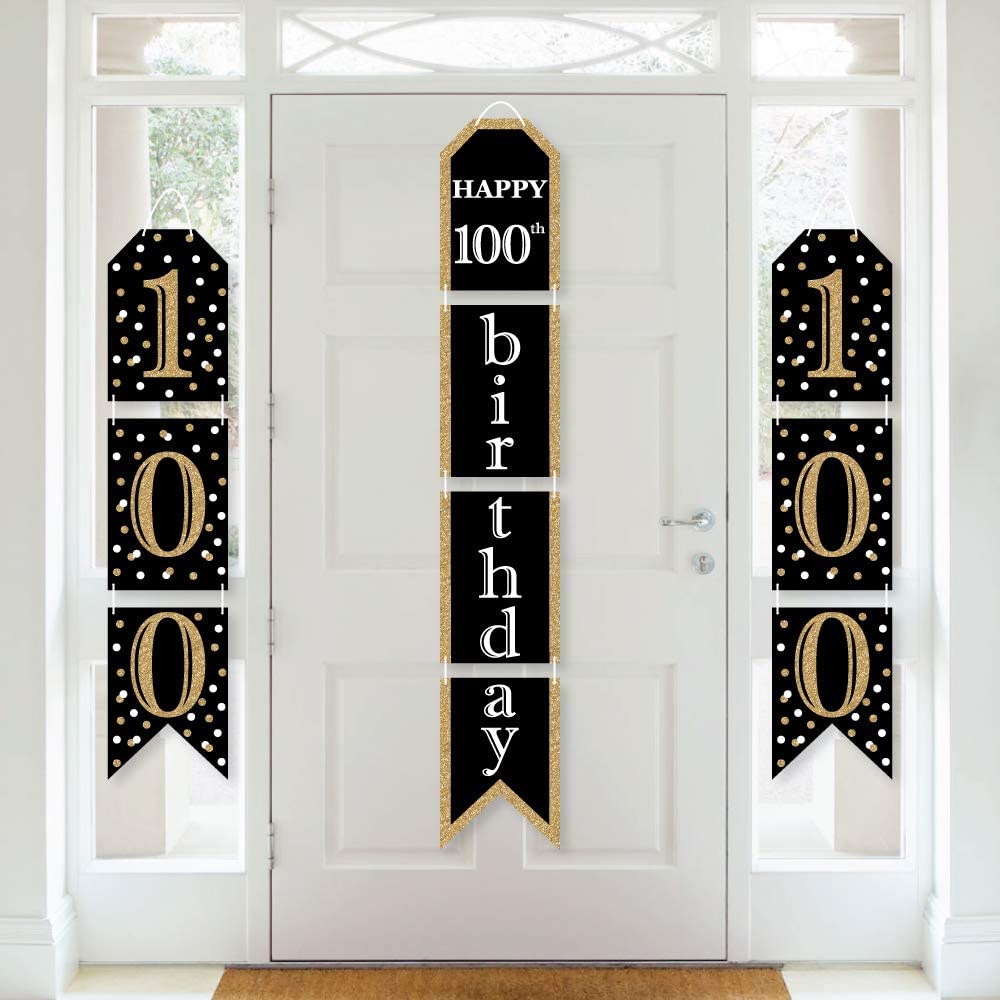 Adult 100th Birthday - Gold - Hanging Vertical Paper Door Banners - Birthday Party Wall Decoration Kit - Indoor Door Decor is backordered and will ship as soon as it is back in stock.