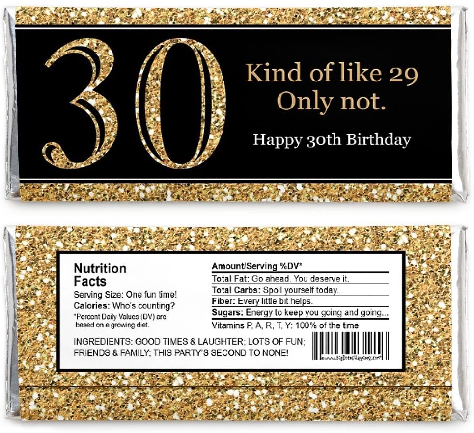 Adult 30th Birthday - Gold - Candy Bar Wrappers Birthday Party Favors - Set of 24 is backordered and will ship as soon as it is back in stock.