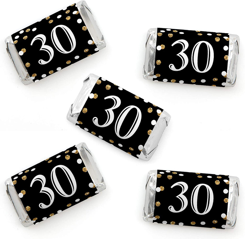 • PREMIUM PARTY SUPPLIES: Adult 30th Birthday - Gold mini candy bar labels are professionally printed on sticker paper with a photo-like shine. They are individually inspected and carefully packaged by hand. Simply wrap each sticker around a miniature chocolate candy bar.