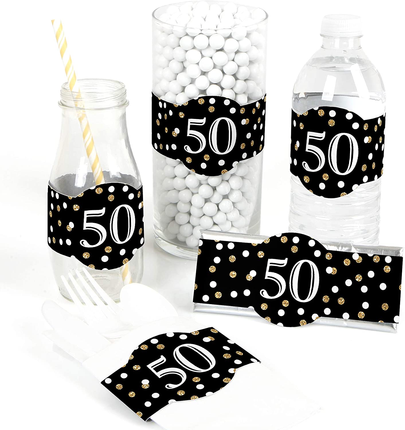 Adult 50th Birthday - Gold - DIY Party Supplies - Birthday Party DIY Wrapper Favors & Decorations - Set of 15 is backordered and will ship as soon as it is back in stock.