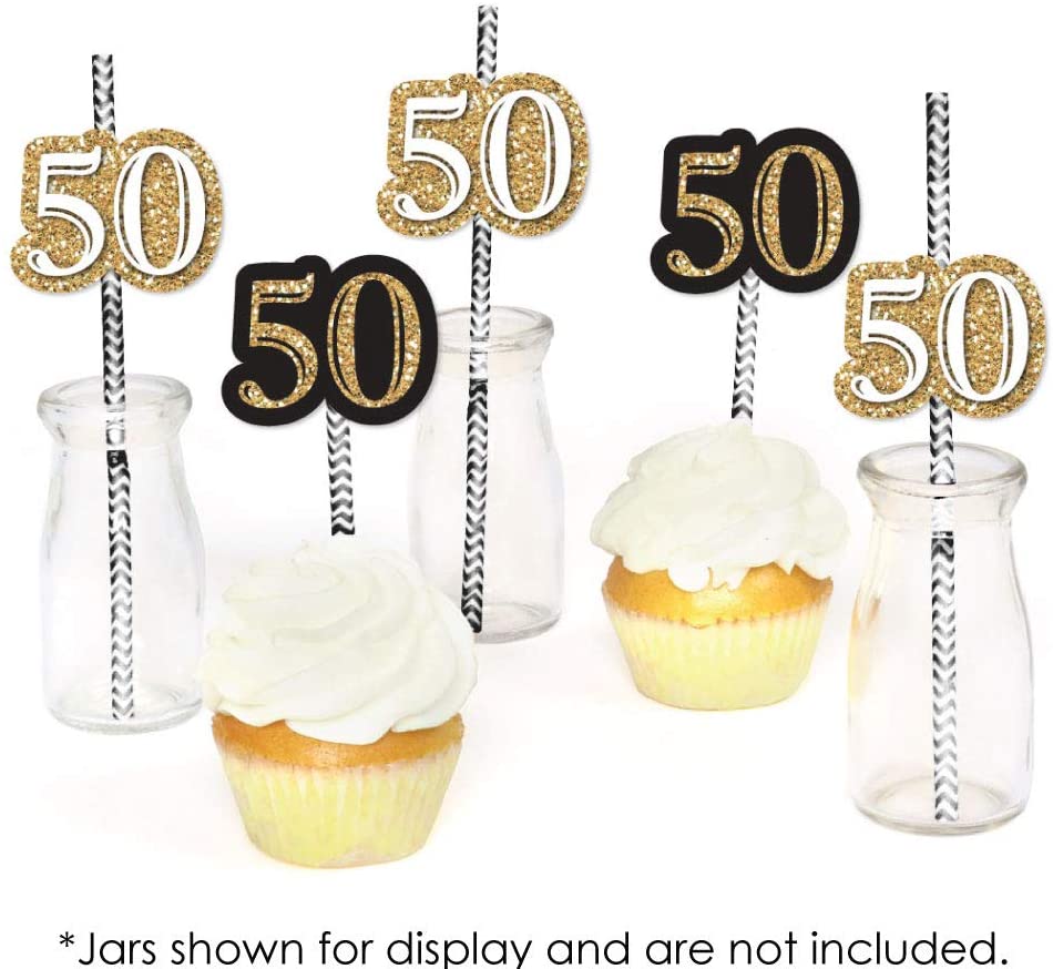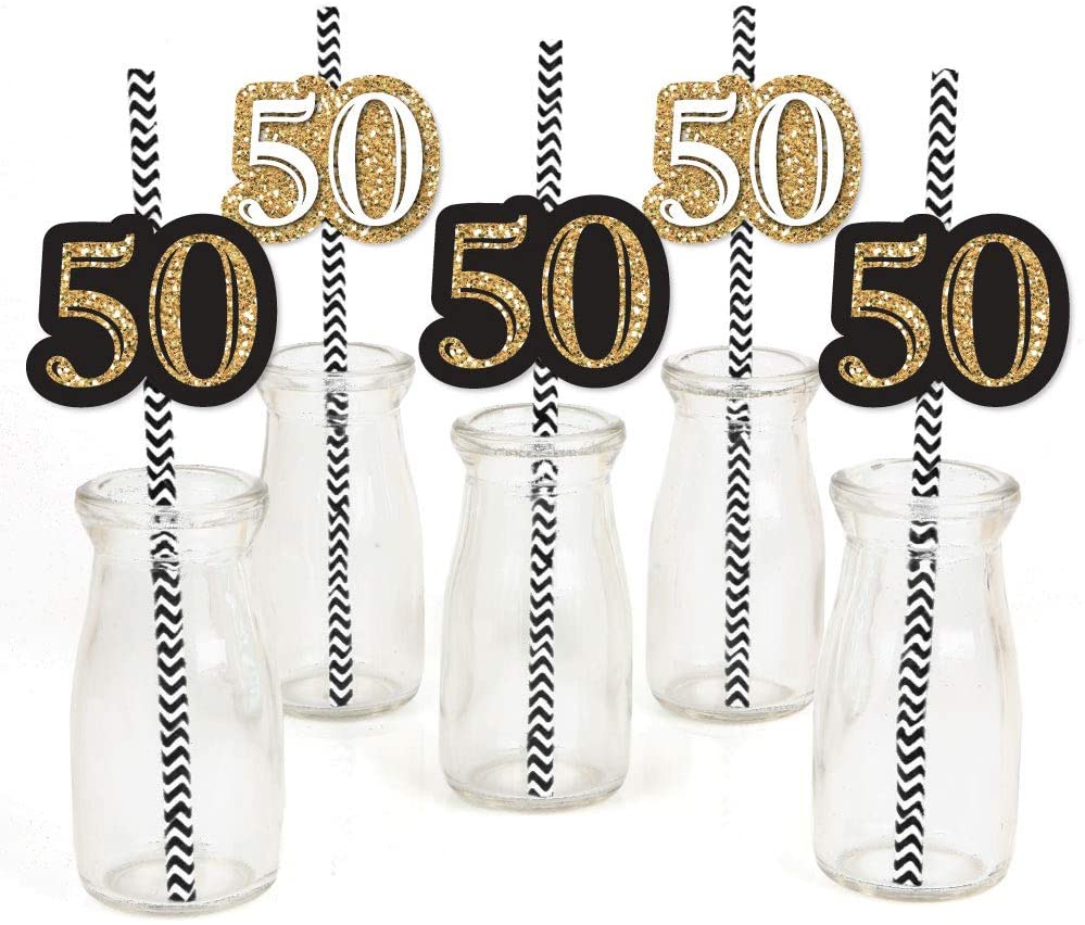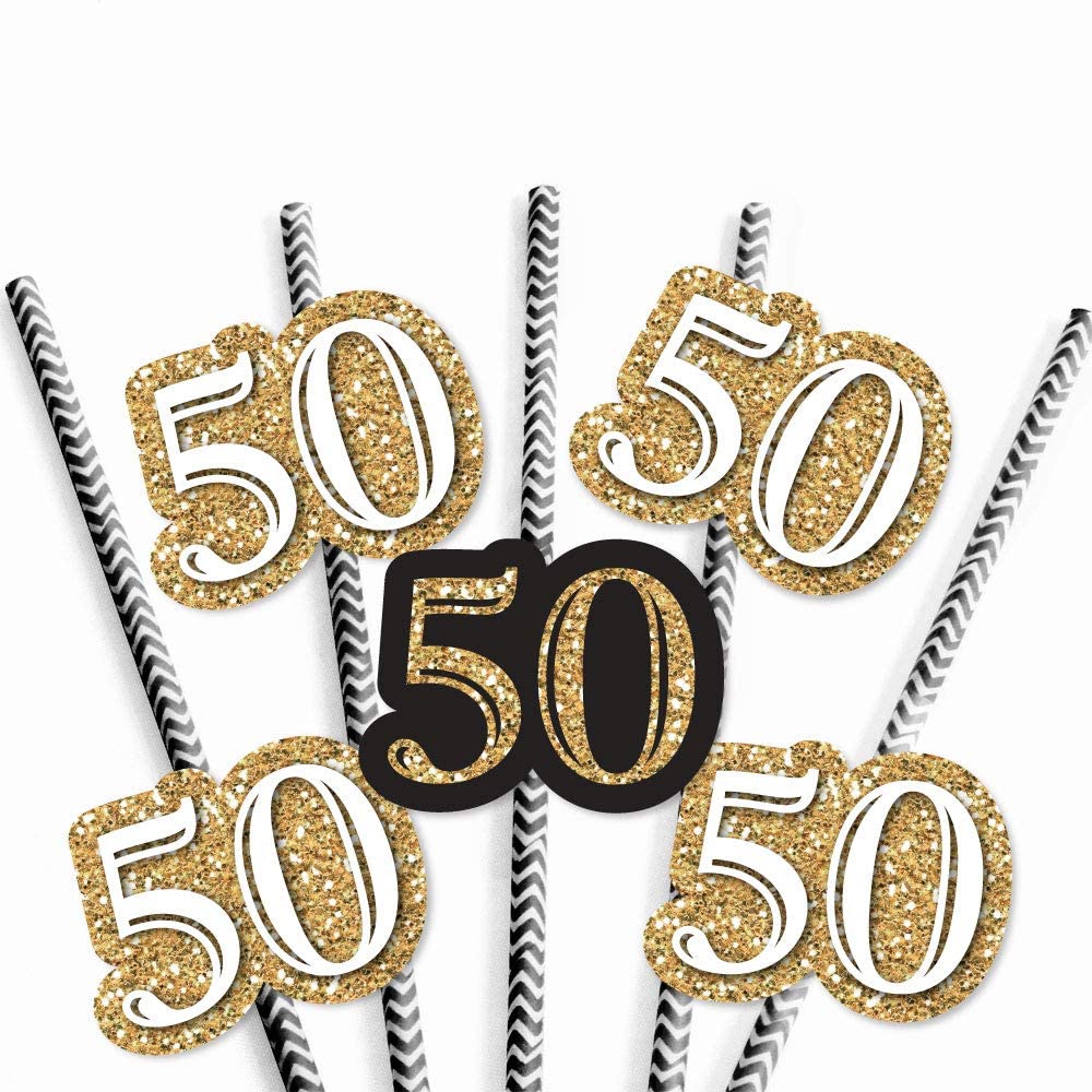 Adult 50th Birthday - Gold - Paper Straw Decor - Birthday Party Striped Decorative Straws - Set of 24 is backordered and will ship as soon as it is back in stock.