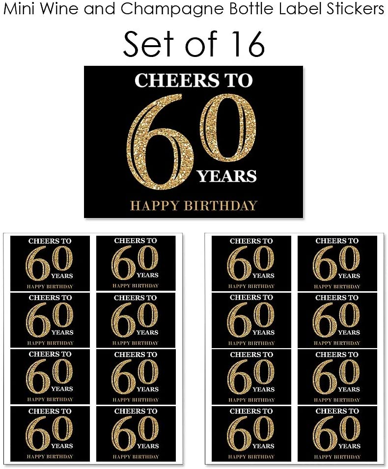 Adult 60th Birthday - Gold - Mini Wine and Champagne Bottle Label Stickers - Birthday Party Favor Gift for Women and Men - Set of 16 is backordered and will ship as soon as it is back in stock.