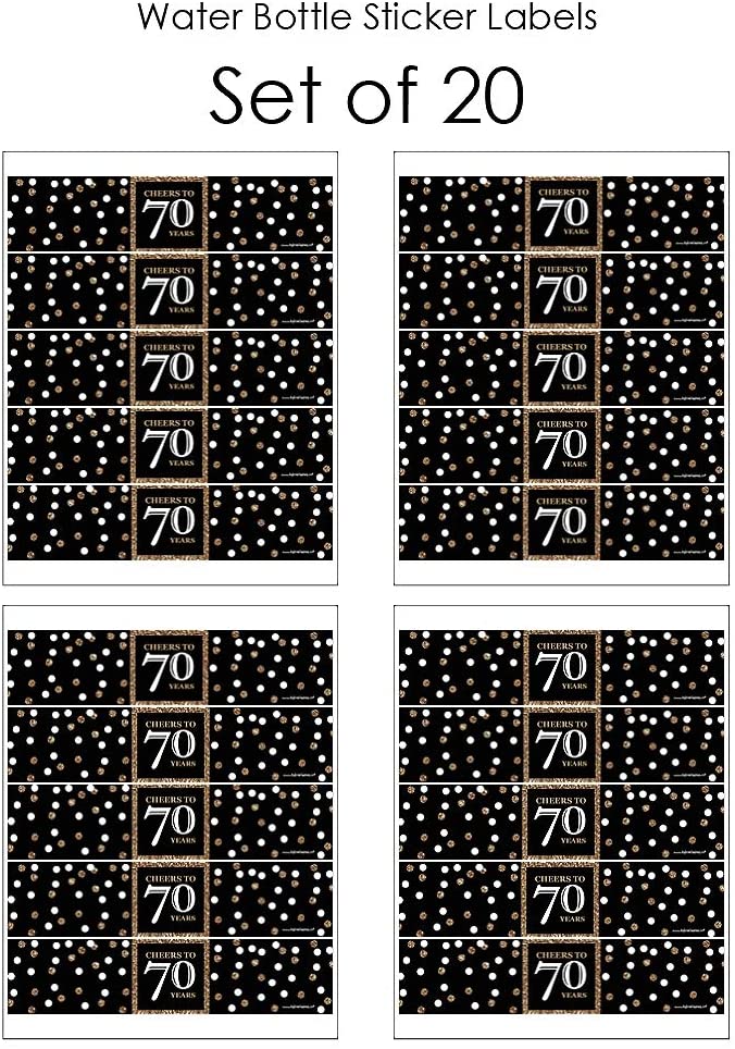 Adult 70th Birthday - Gold - Birthday Party Water Bottle Sticker Labels - Set of 20 is backordered and will ship as soon as it is back in stock.