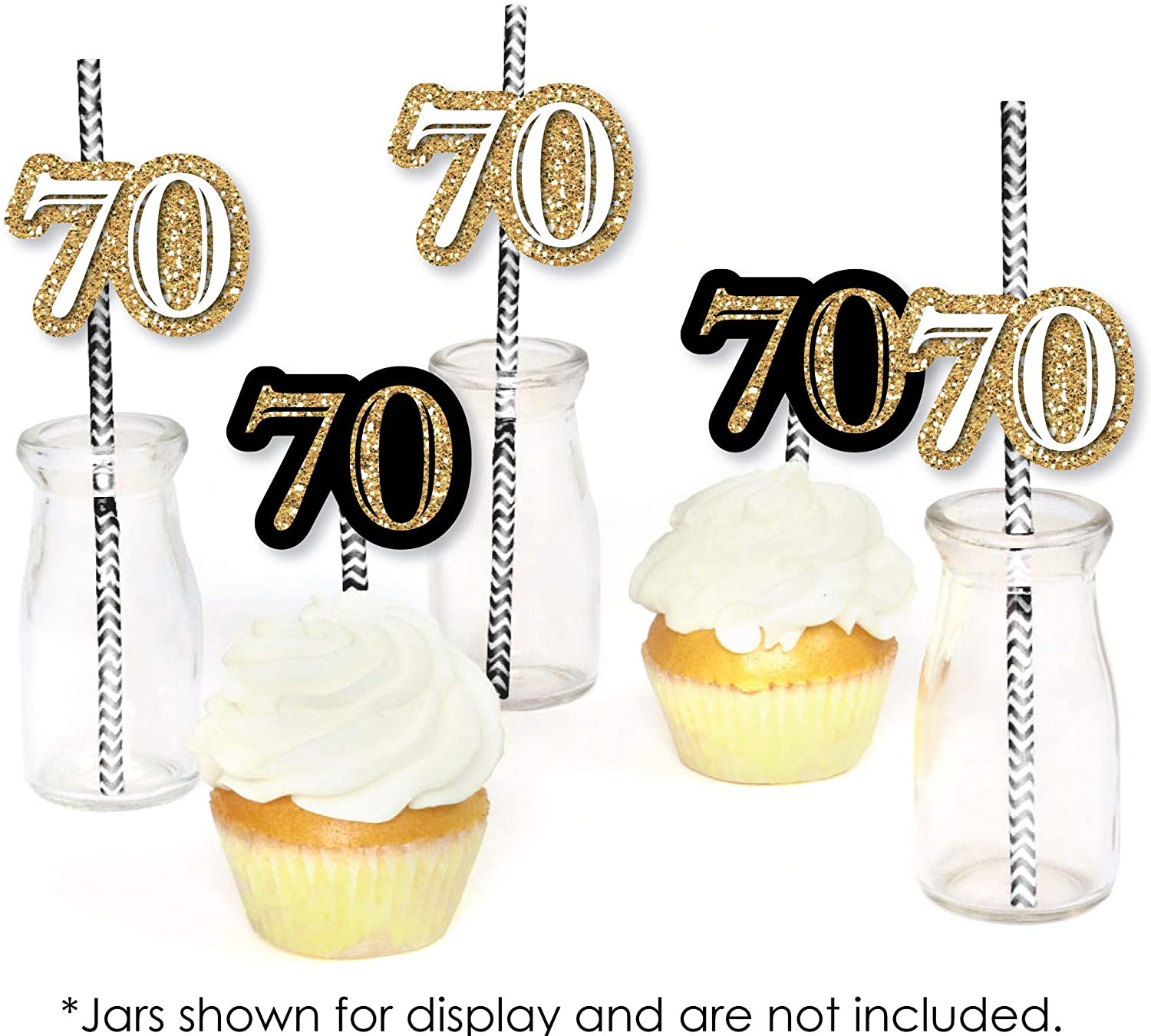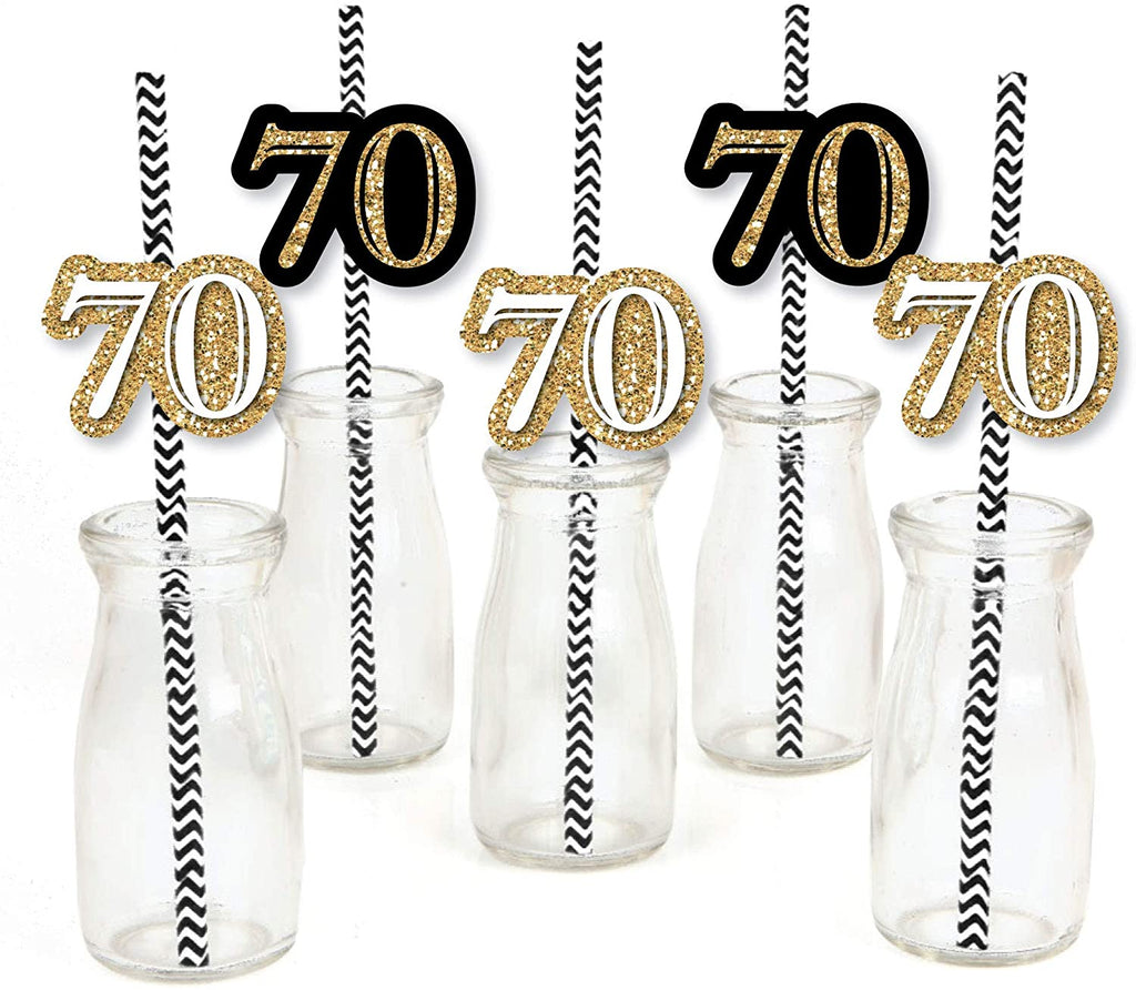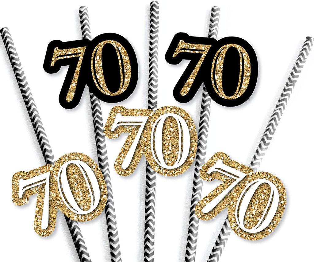 Adult 70th Birthday - Gold - Paper Straw Decor - Birthday Party Striped Decorative Straws - Set of 24 is backordered and will ship as soon as it is back in stock.