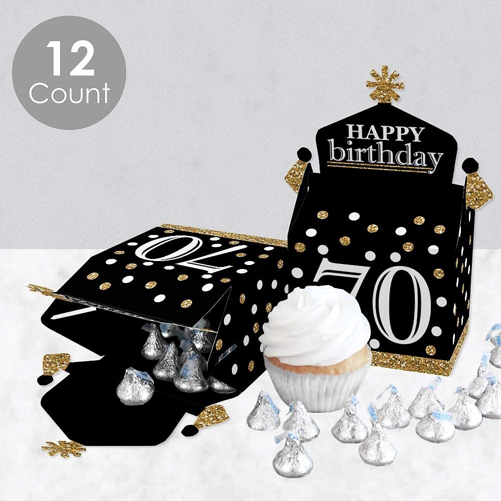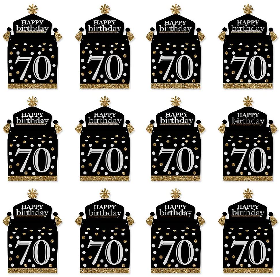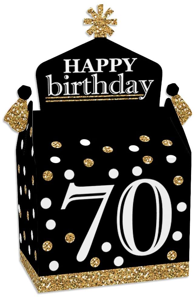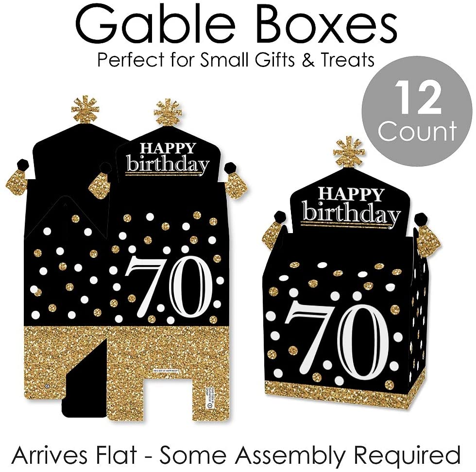 Adult 70th Birthday - Gold - Treat Box Party Favors - Birthday Party Goodie Gable Boxes - Set of 12 is backordered and will ship as soon as it is back in stock.