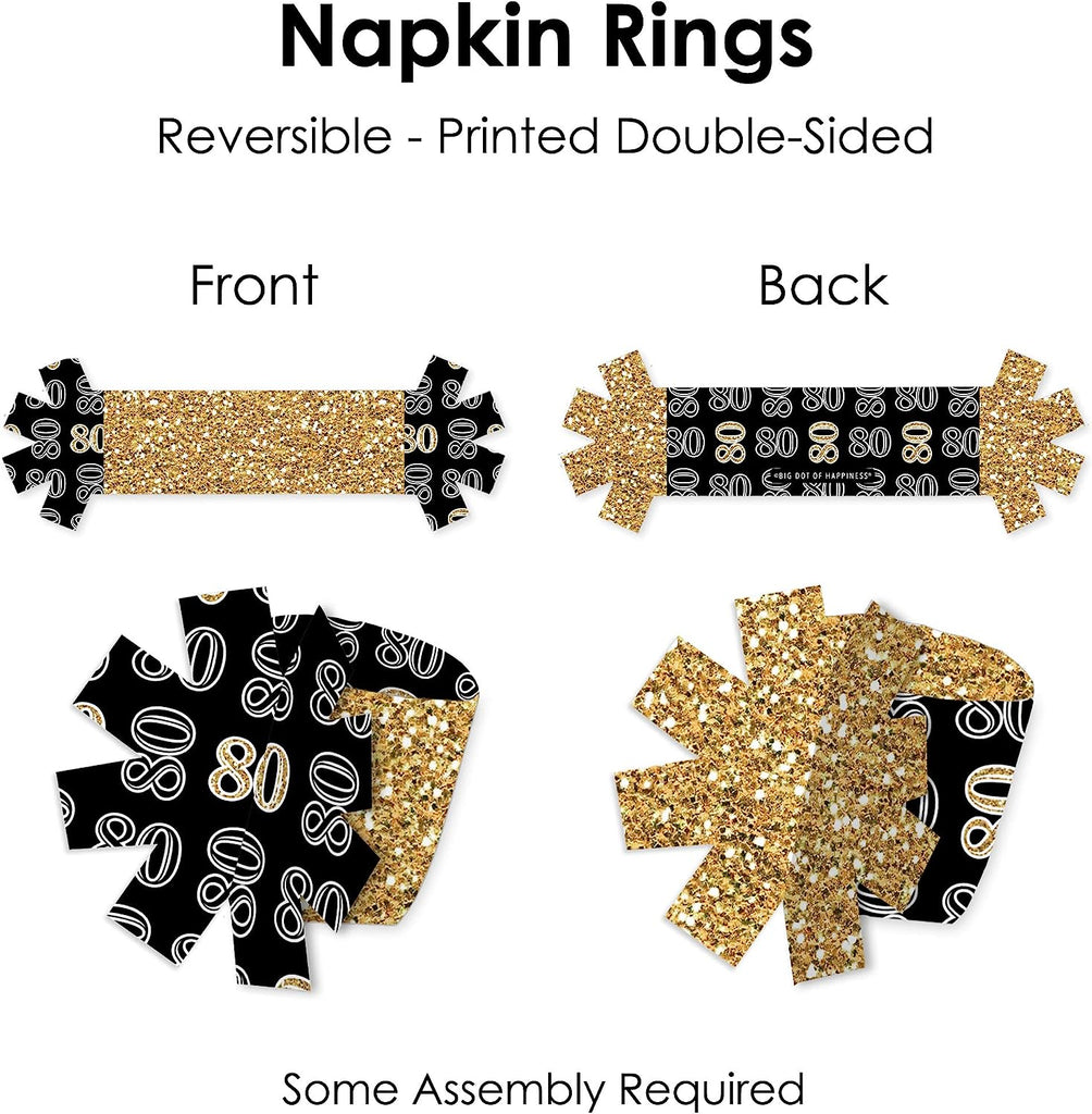 Adult 80th Birthday - Gold - Birthday Party Paper Napkin Holder - Napkin Rings - Set of 24 is backordered and will ship as soon as it is back in stock.