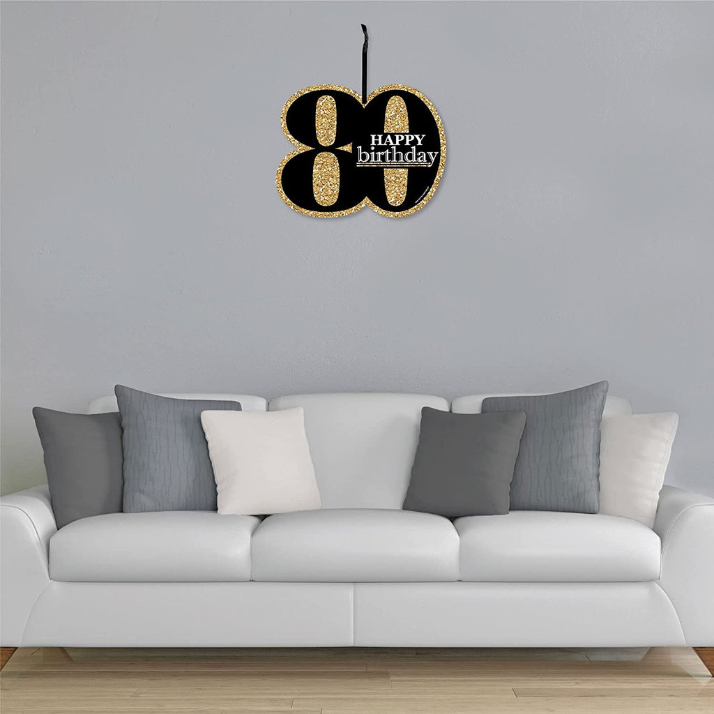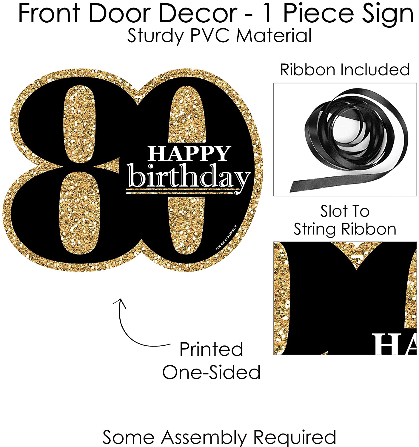 Adult 80th Birthday - Gold - Hanging Porch Birthday Party Outdoor Decorations - Front Door Decor - 1 Piece Sign is backordered and will ship as soon as it is back in stock.