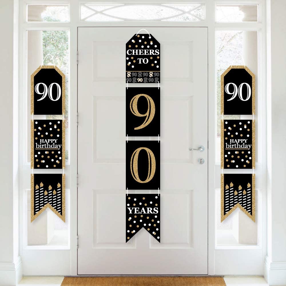 Adult 90th Birthday - Gold - Hanging Vertical Paper Door Banners - Birthday Party Wall Decoration Kit - Indoor Door Decor is backordered and will ship as soon as it is back in stock.