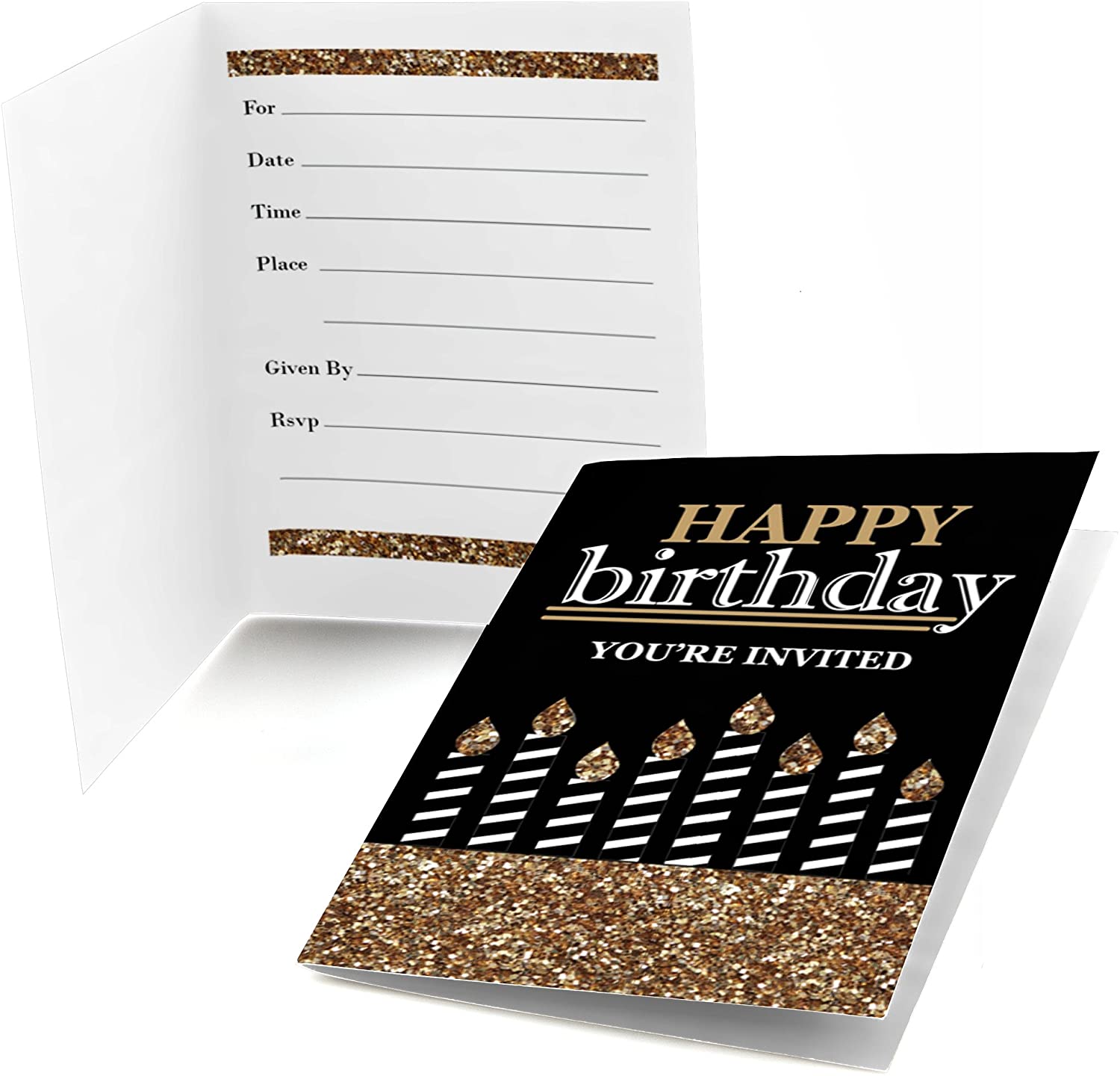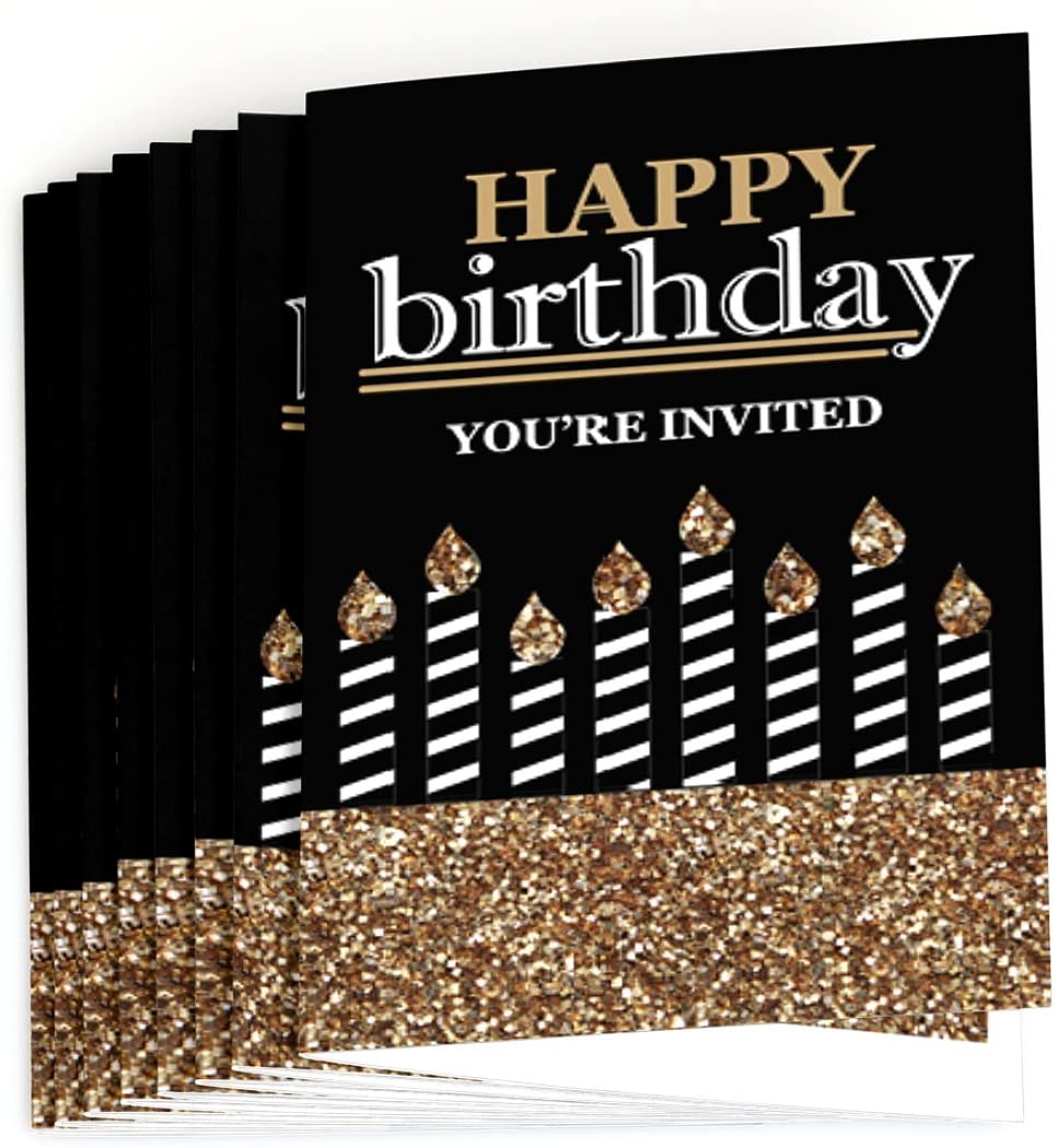 Adult Happy Birthday - Gold - Fill-In Birthday Party Invitations (8 count)