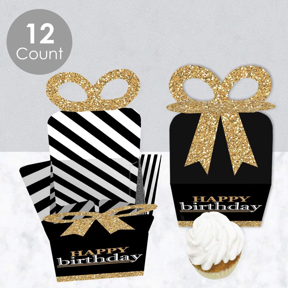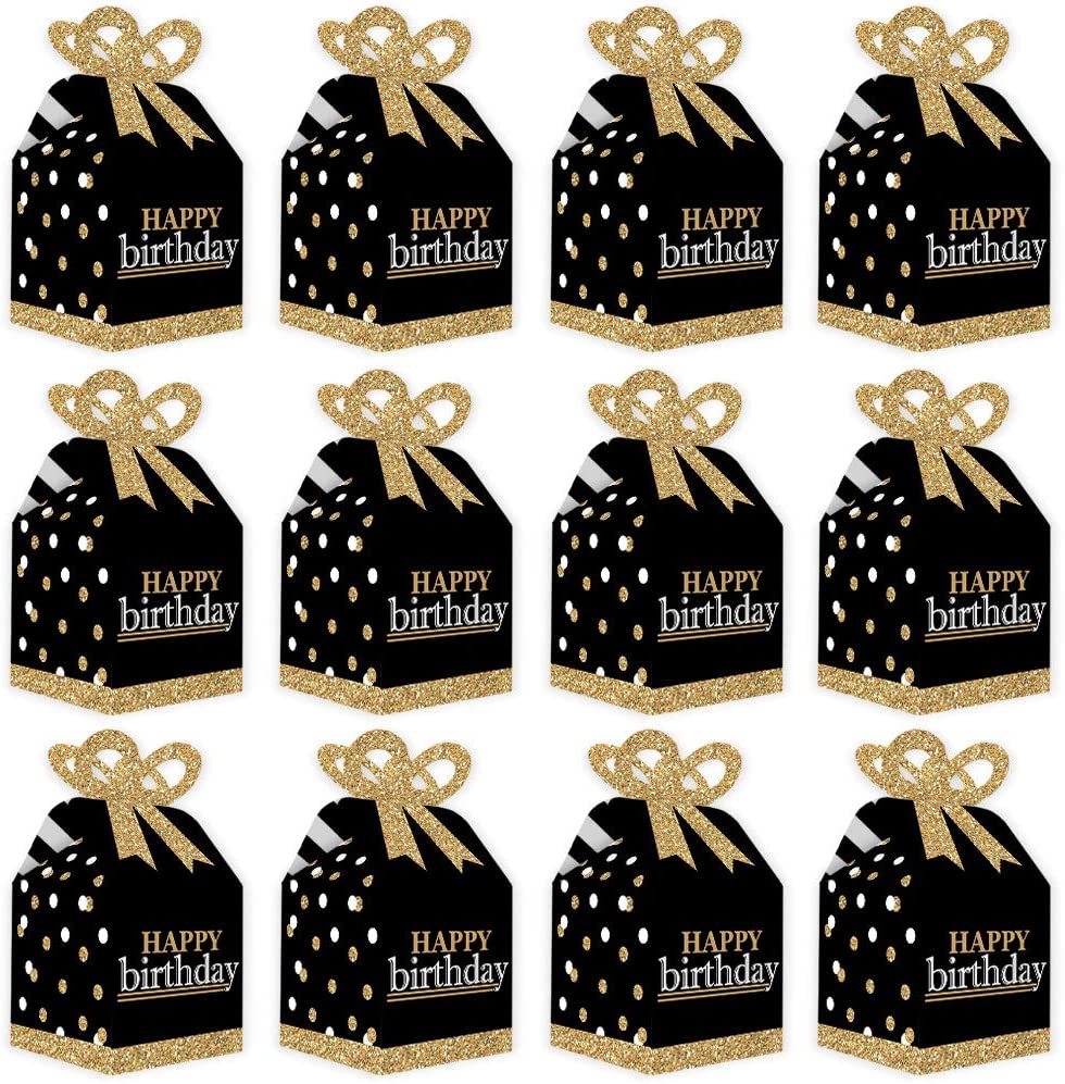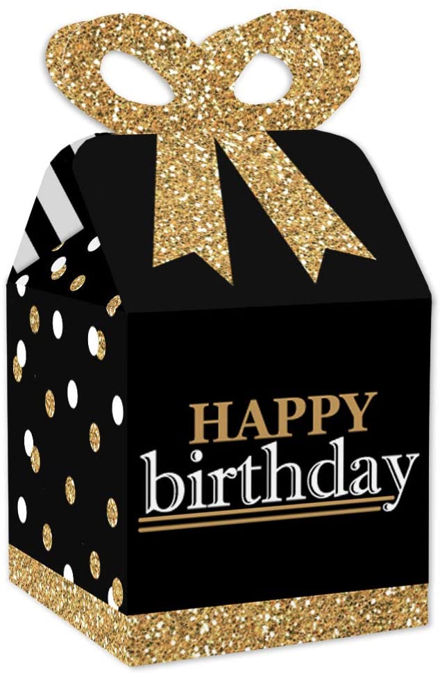 Adult Happy Birthday - Gold - Square Favor Gift Boxes - Birthday Party Bow Boxes - Set of 12 is backordered and will ship as soon as it is back in stock.