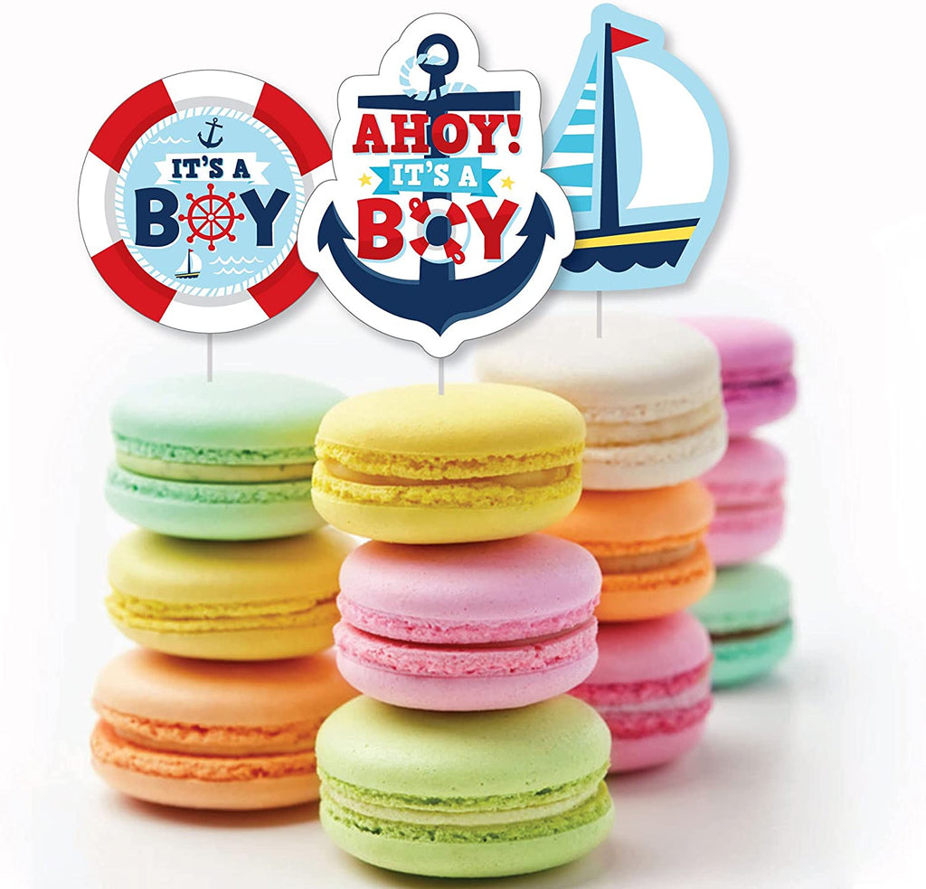 Ahoy It’s a Boy - Dessert Cupcake Toppers - Nautical Baby Shower Clear Treat Picks - Set of 24 is backordered and will ship as soon as it is back in stock.
