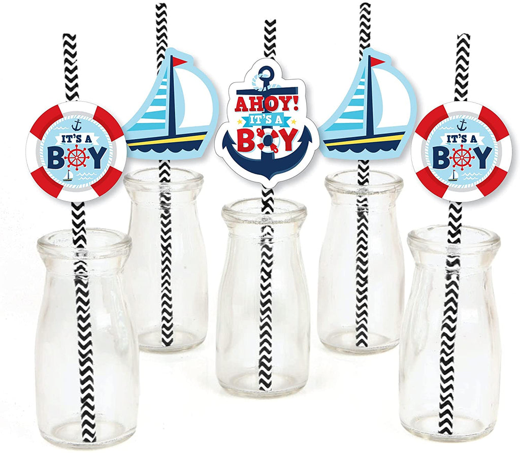 Ahoy It’s a Boy - Paper Straw Decor - Nautical Baby Shower Striped Decorative Straws - Set of 24 is backordered and will ship as soon as it is back in stock.