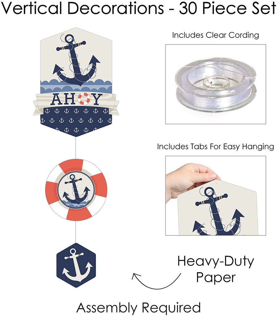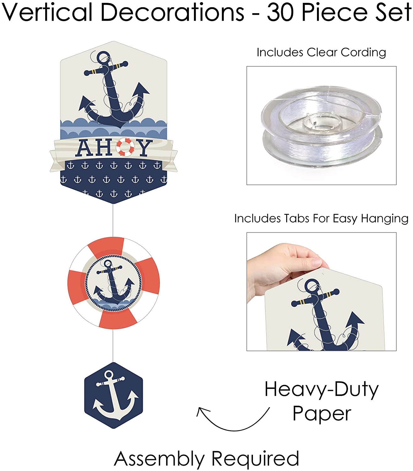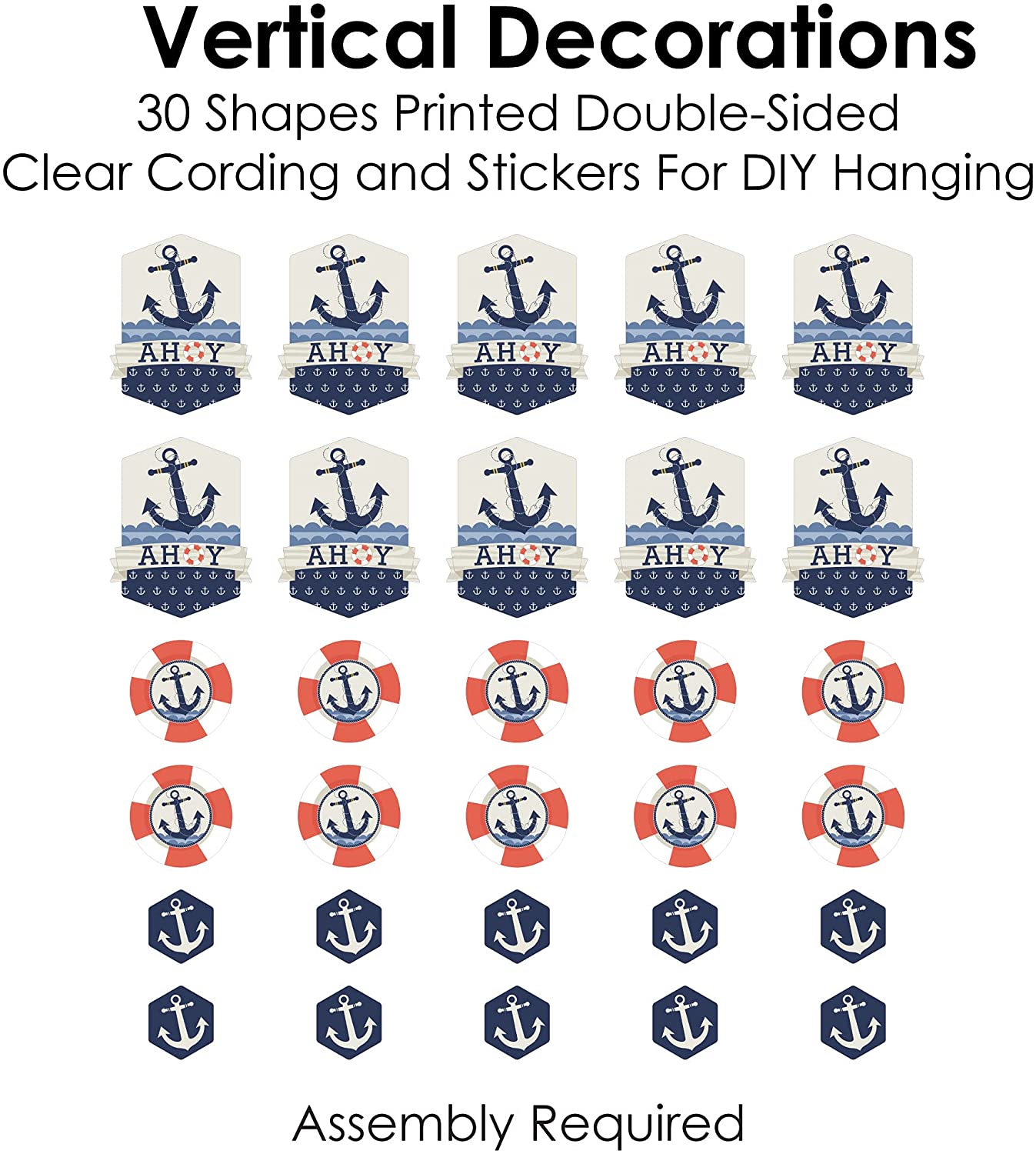 Ahoy - Nautical - Baby Shower or Birthday Party DIY Dangler Backdrop - Hanging Vertical Decorations - 30 Pieces is backordered and will ship as soon as it is back in stock.