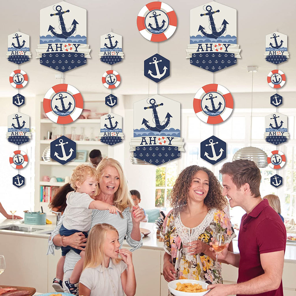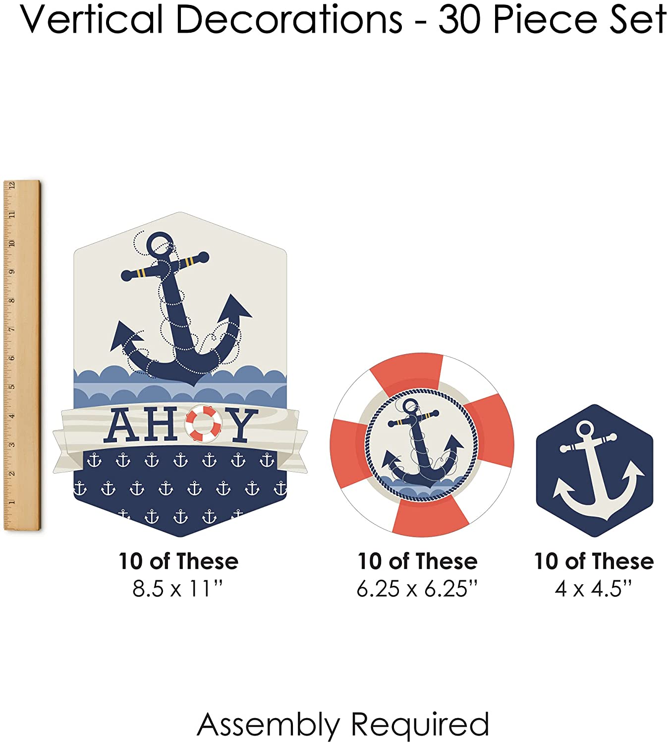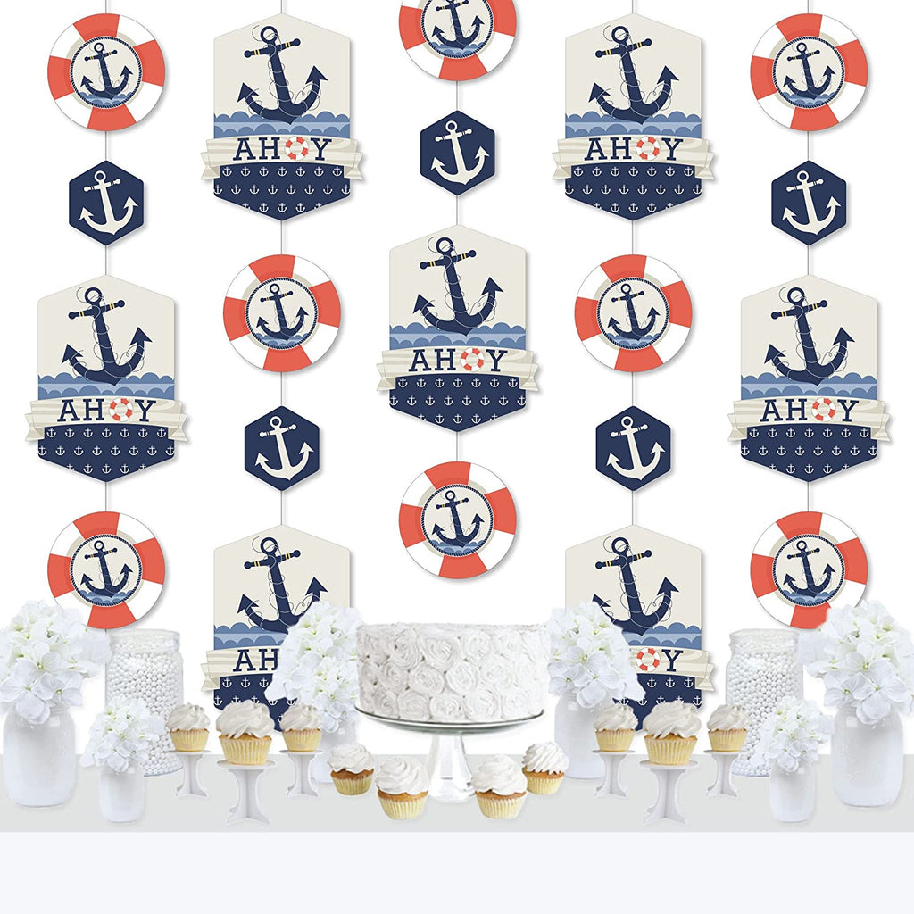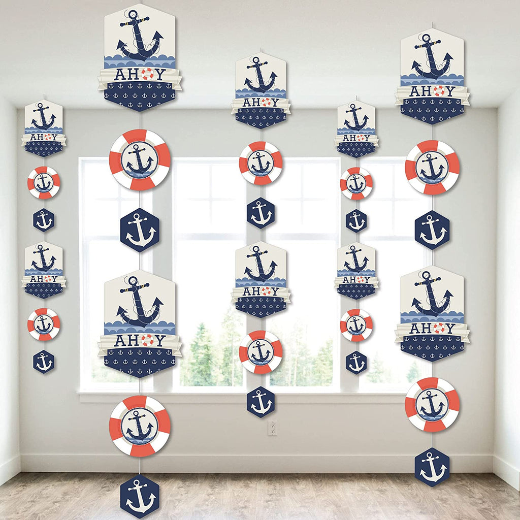 Ahoy - Nautical - Baby Shower or Birthday Party DIY Dangler Backdrop - Hanging Vertical Decorations - 30 Pieces is backordered and will ship as soon as it is back in stock.