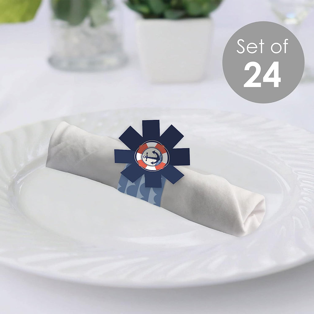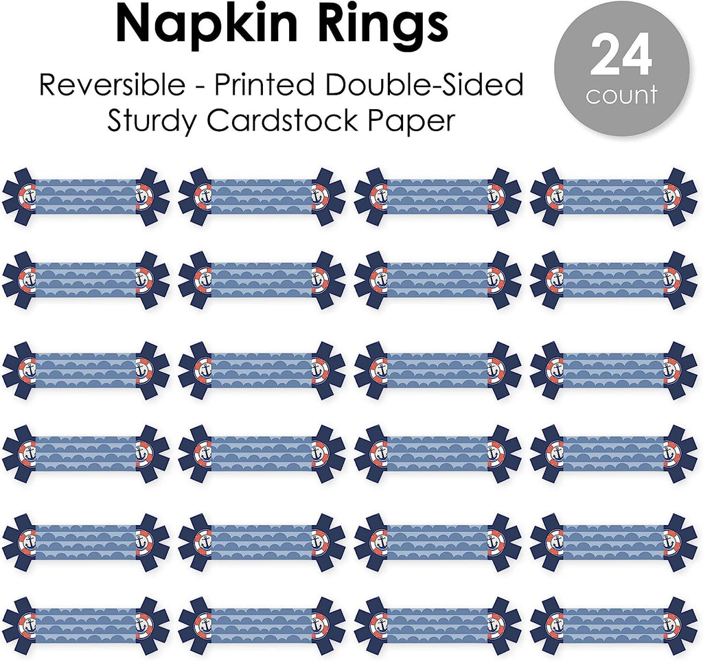 Ahoy - Nautical - Baby Shower or Birthday Party Paper Napkin Holder - Napkin Rings - Set of 24 is backordered and will ship as soon as it is back in stock.