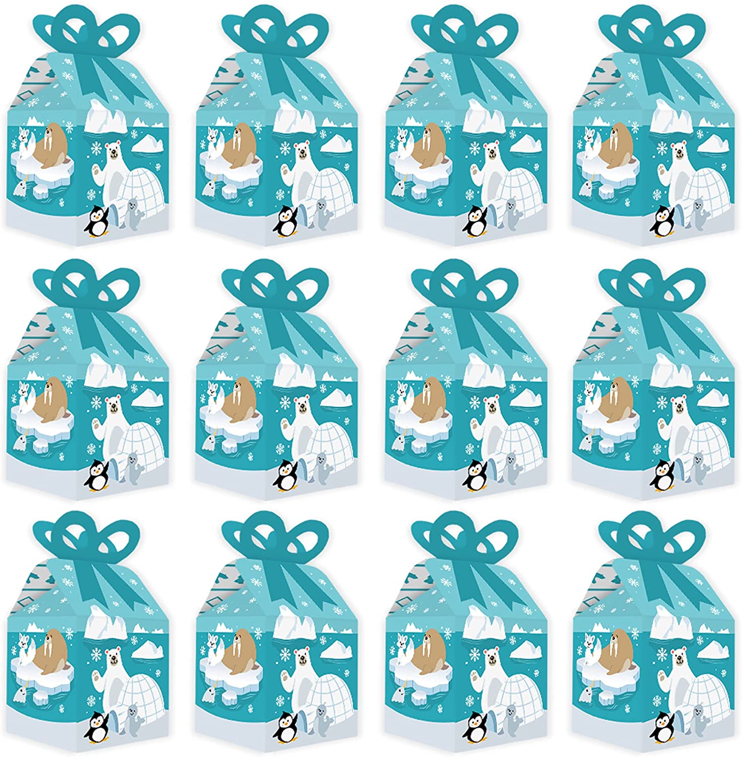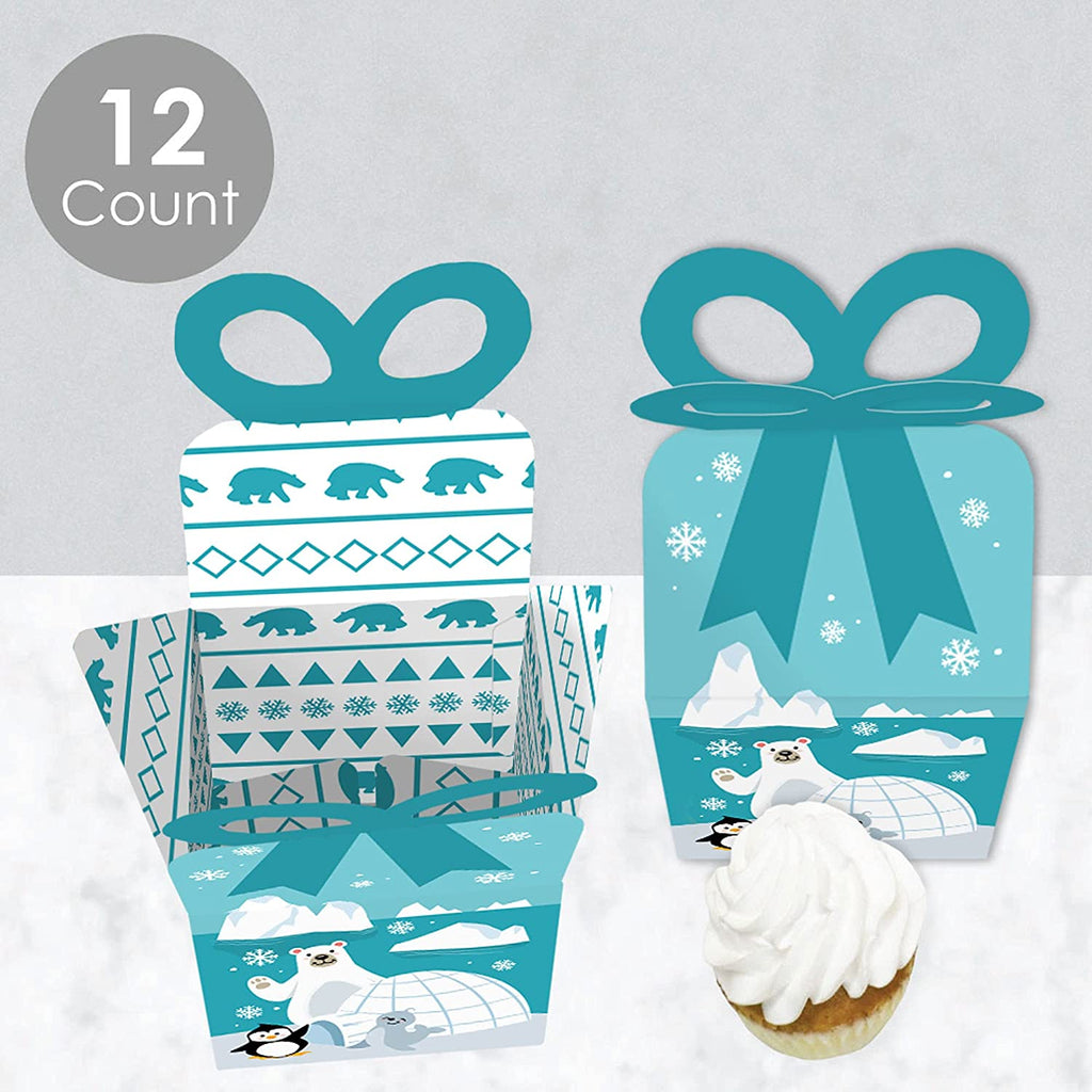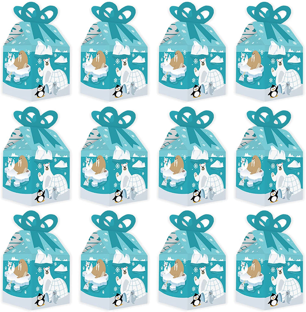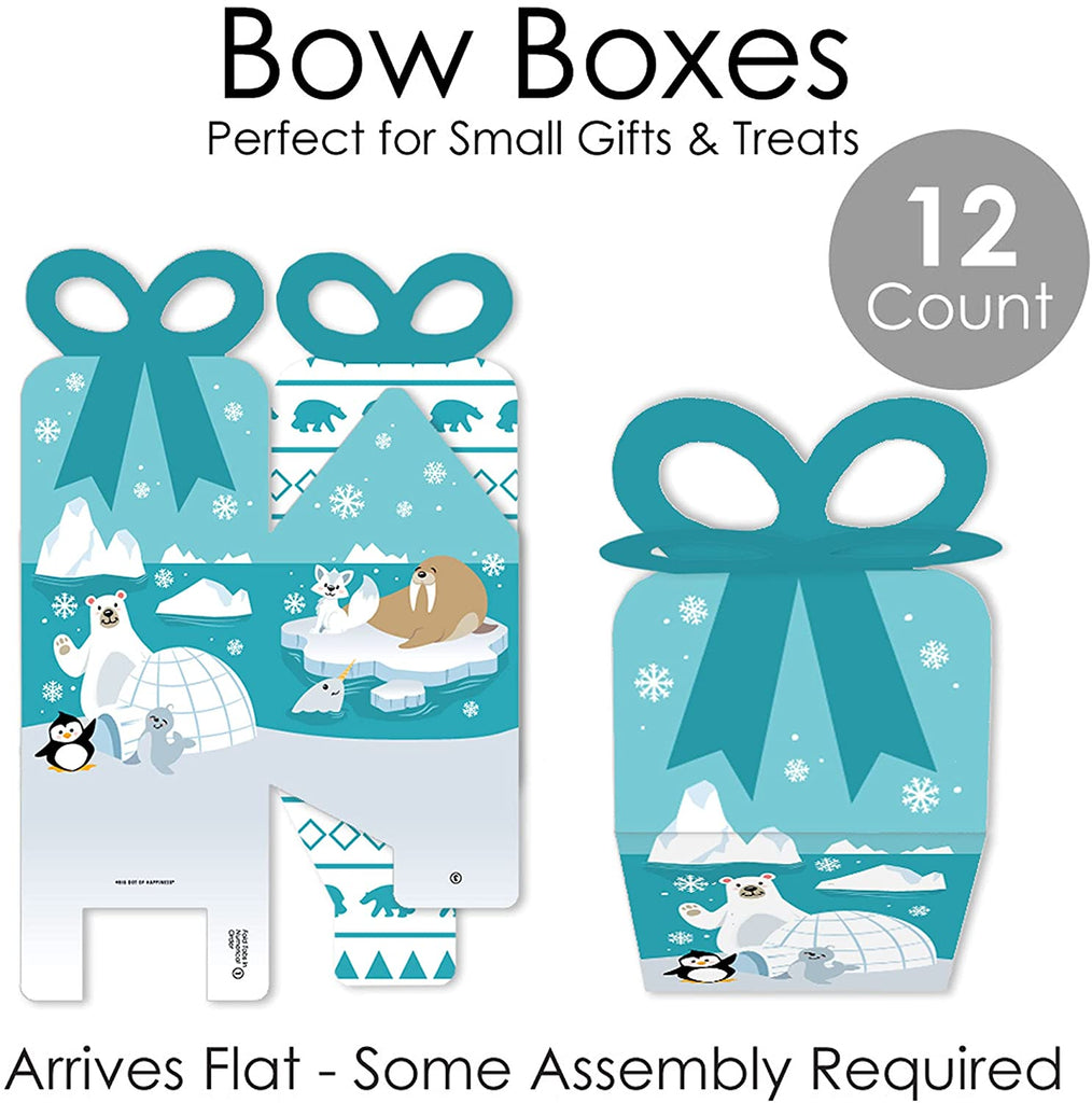 Arctic Polar Animals - Square Favor Gift Boxes - Winter Baby Shower or Birthday Party Bow Boxes - Set of 12 is backordered and will ship as soon as it is back in stock.