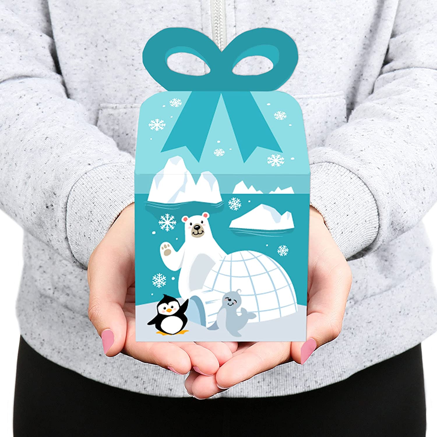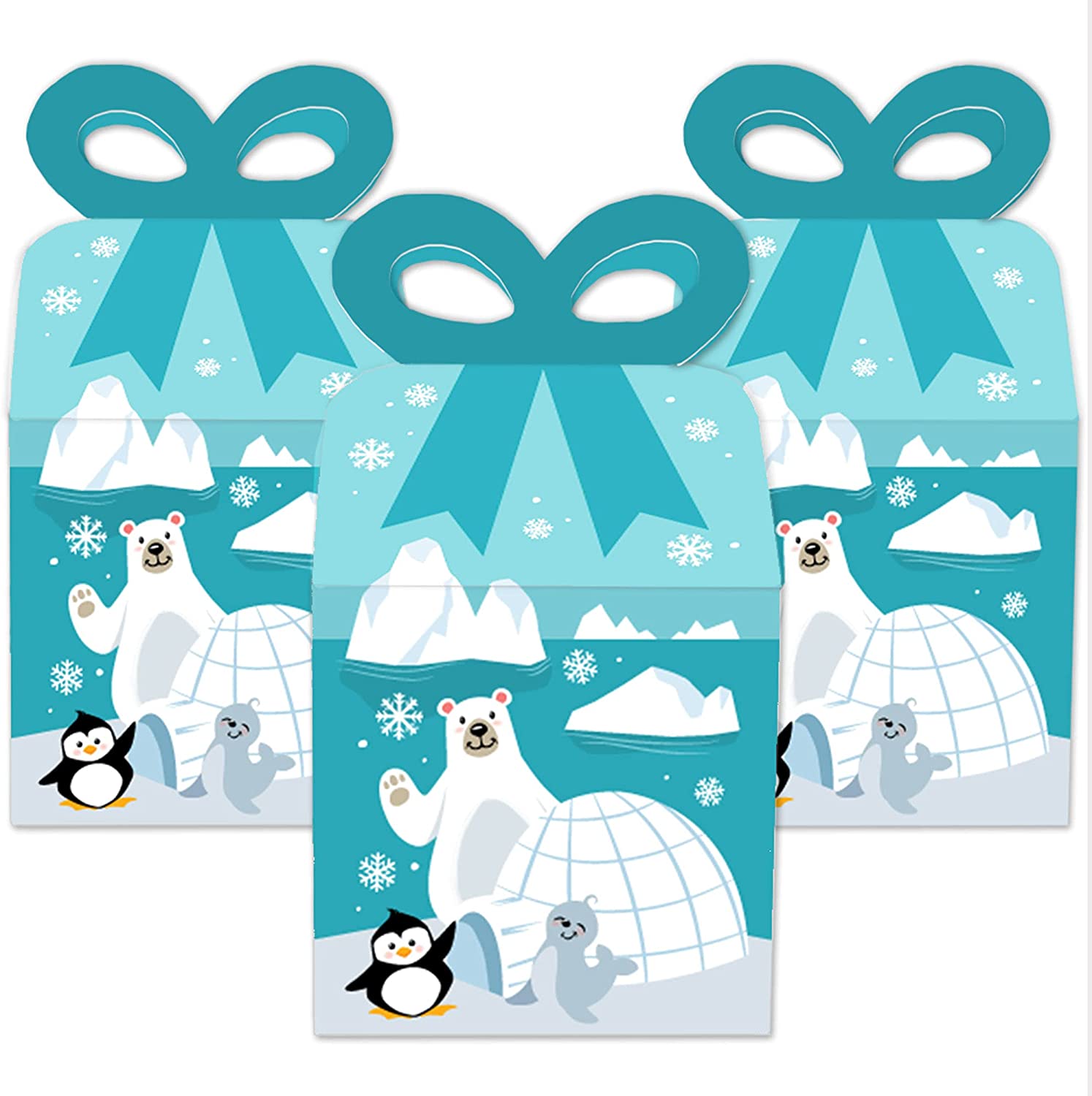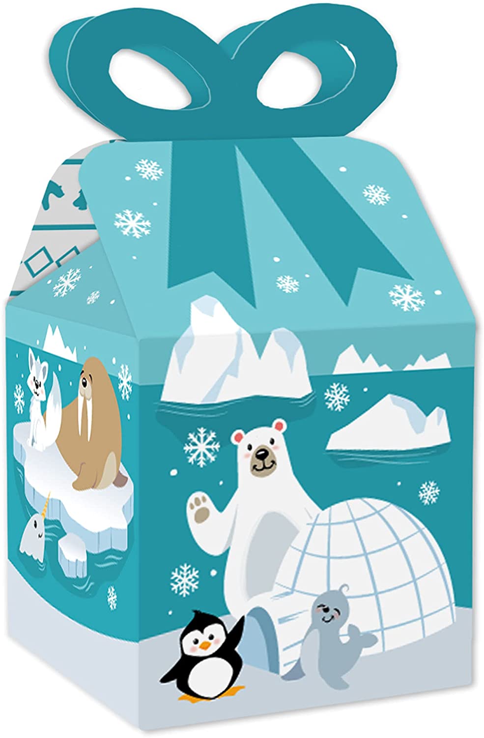 Arctic Polar Animals - Square Favor Gift Boxes - Winter Baby Shower or Birthday Party Bow Boxes - Set of 12 is backordered and will ship as soon as it is back in stock.