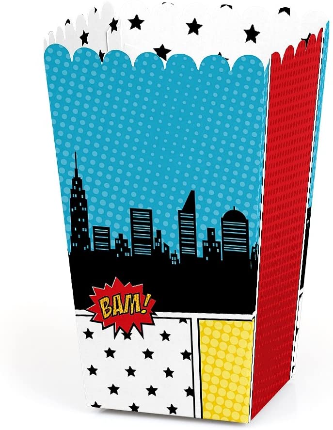 Bam Superhero - Baby Shower or Birthday Party Favor Popcorn Treat Boxes - Set of 12 is backordered and will ship as soon as it is back in stock.