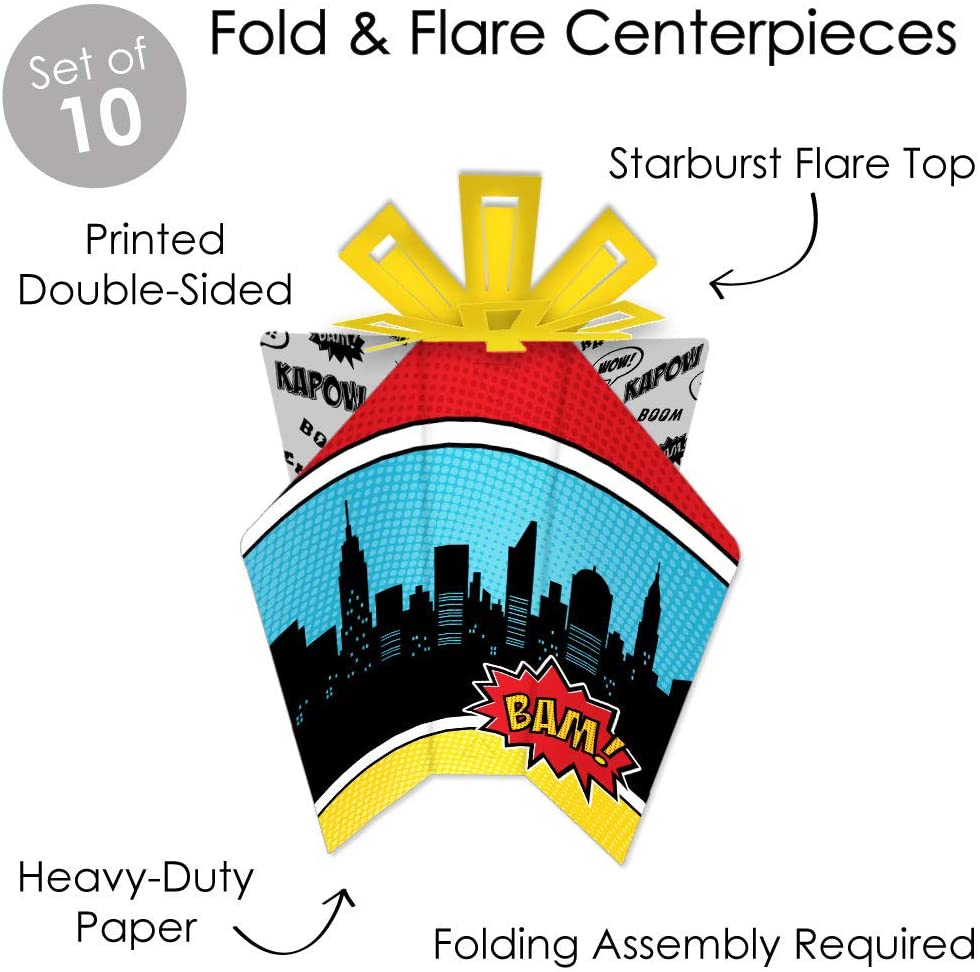 Bam Superhero - Table Decorations - Baby Shower or Birthday Party Fold and Flare Centerpieces - 10 Count
