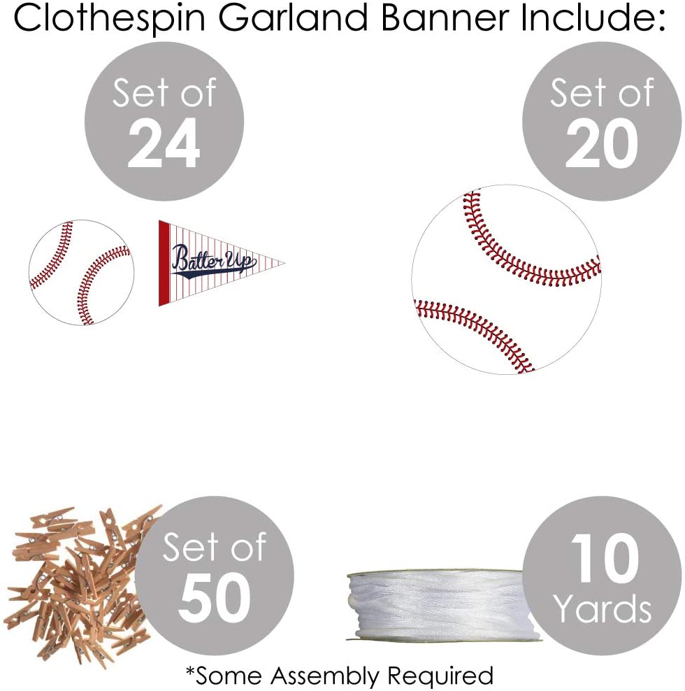 Batter Up - Baseball - Baby Shower or Birthday Party DIY Decorations - Clothespin Garland Banner - 44 Pieces is backordered and will ship as soon as it is back in stock.