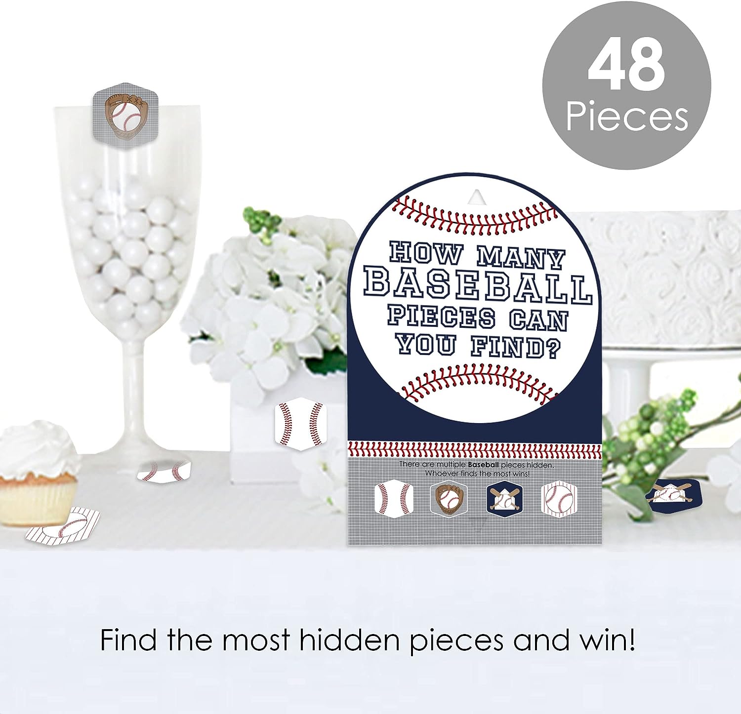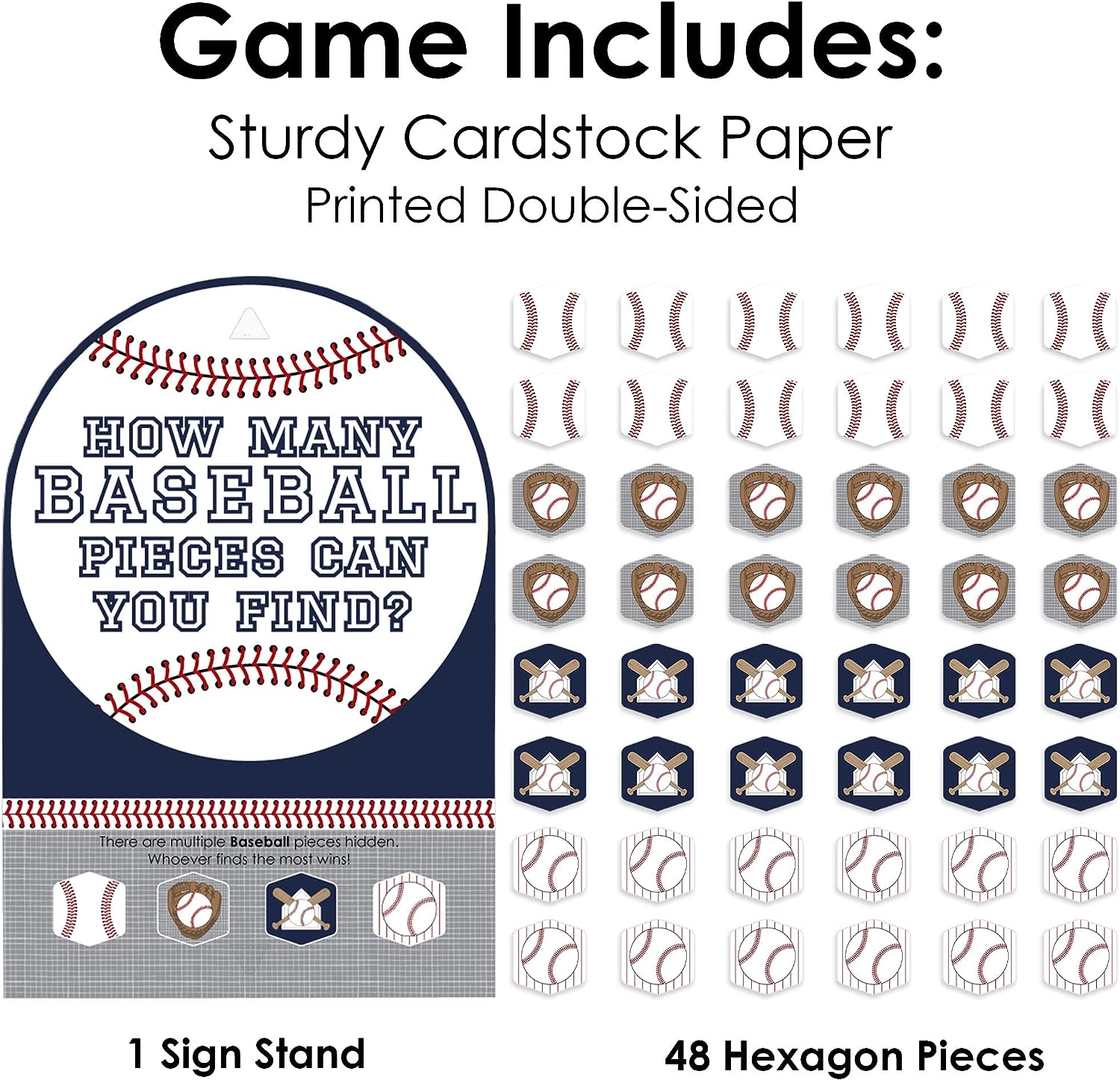 Batter Up - Baseball - Baby Shower or Birthday Party Scavenger Hunt - 1 Stand and 48 Game Pieces - Hide and Find Game is backordered and will ship as soon as it is back in stock.