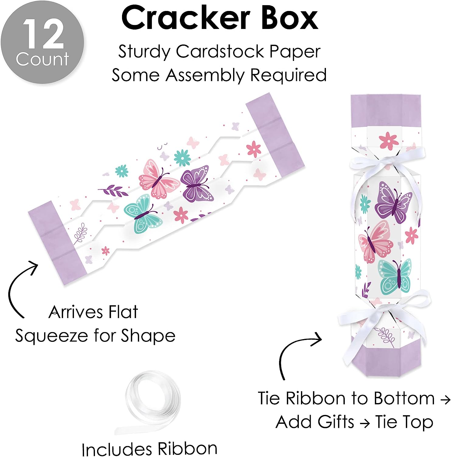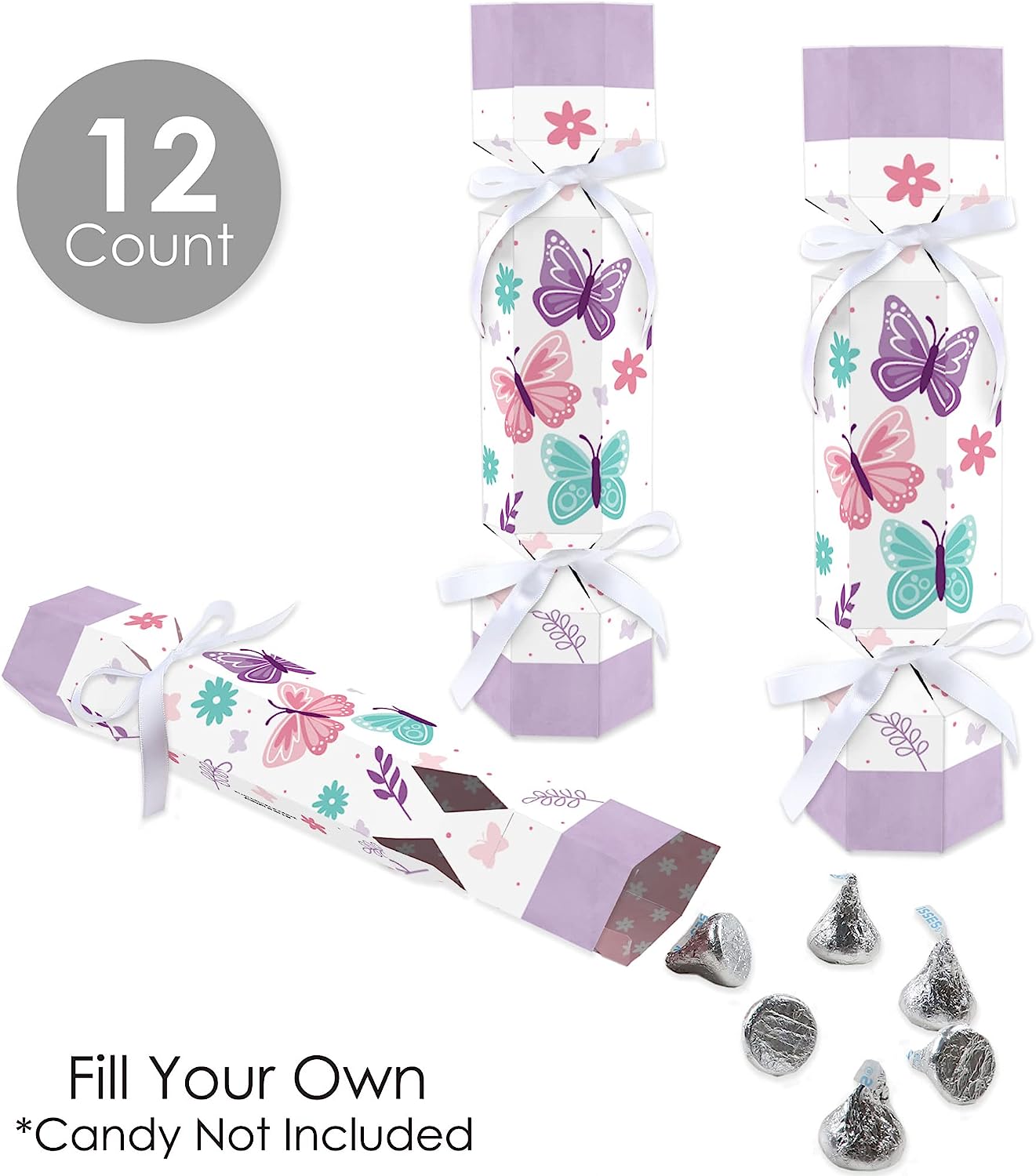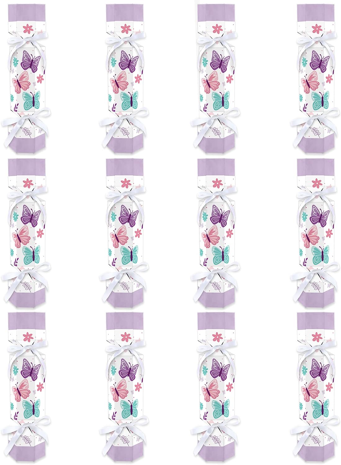 Beautiful Butterfly - No Snap Floral Baby Shower or Birthday Party Table Favors - DIY Cracker Boxes - Set of 12 is backordered and will ship as soon as it is back in stock.