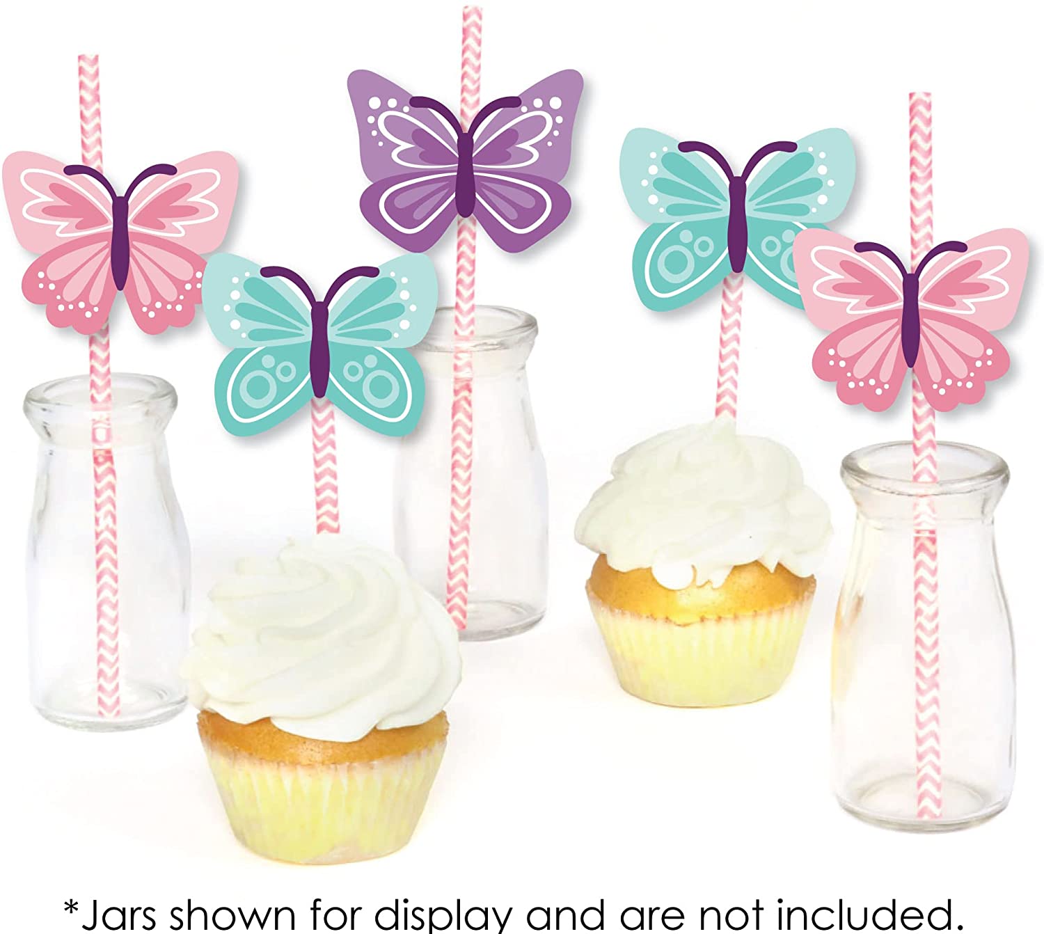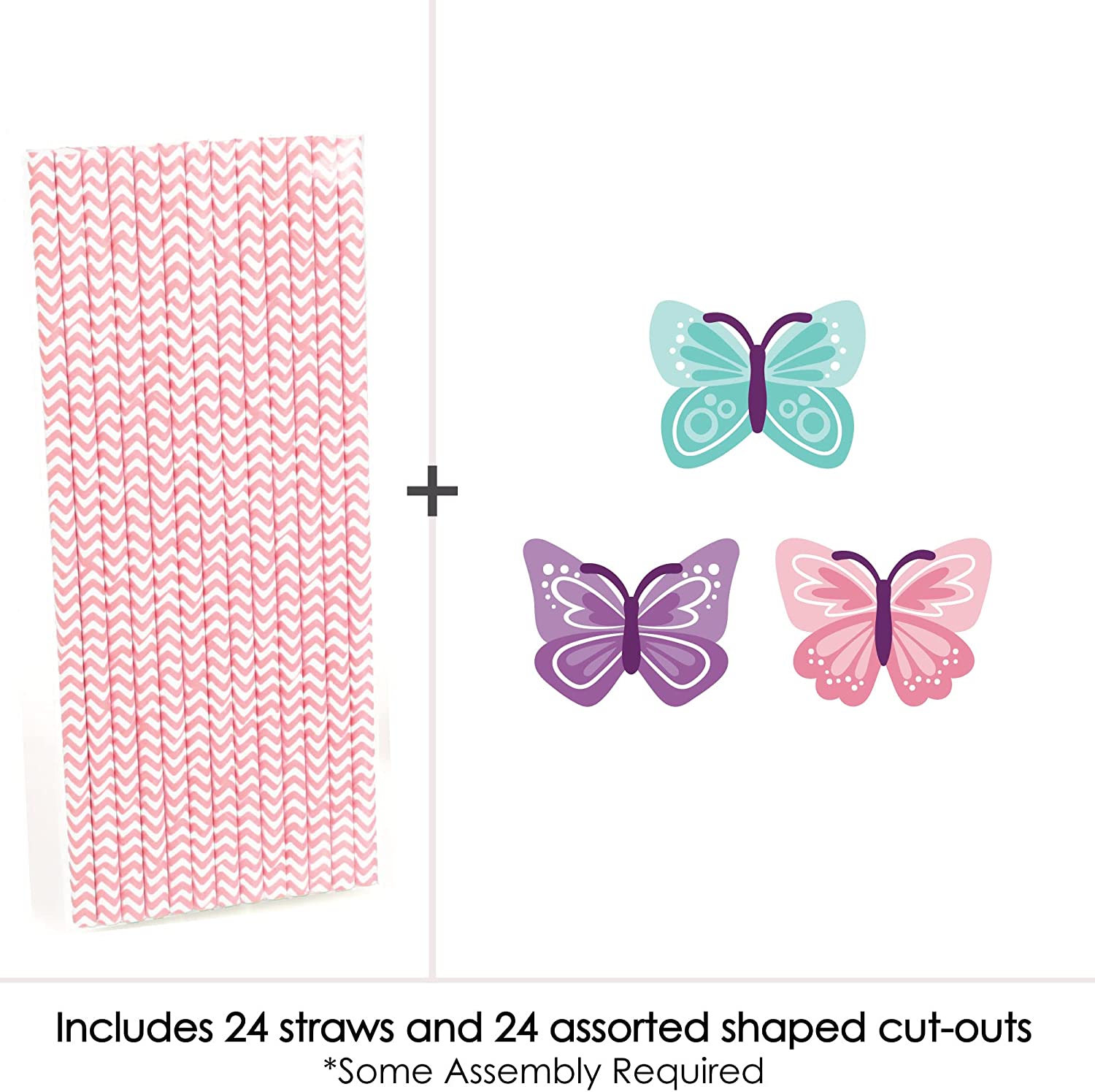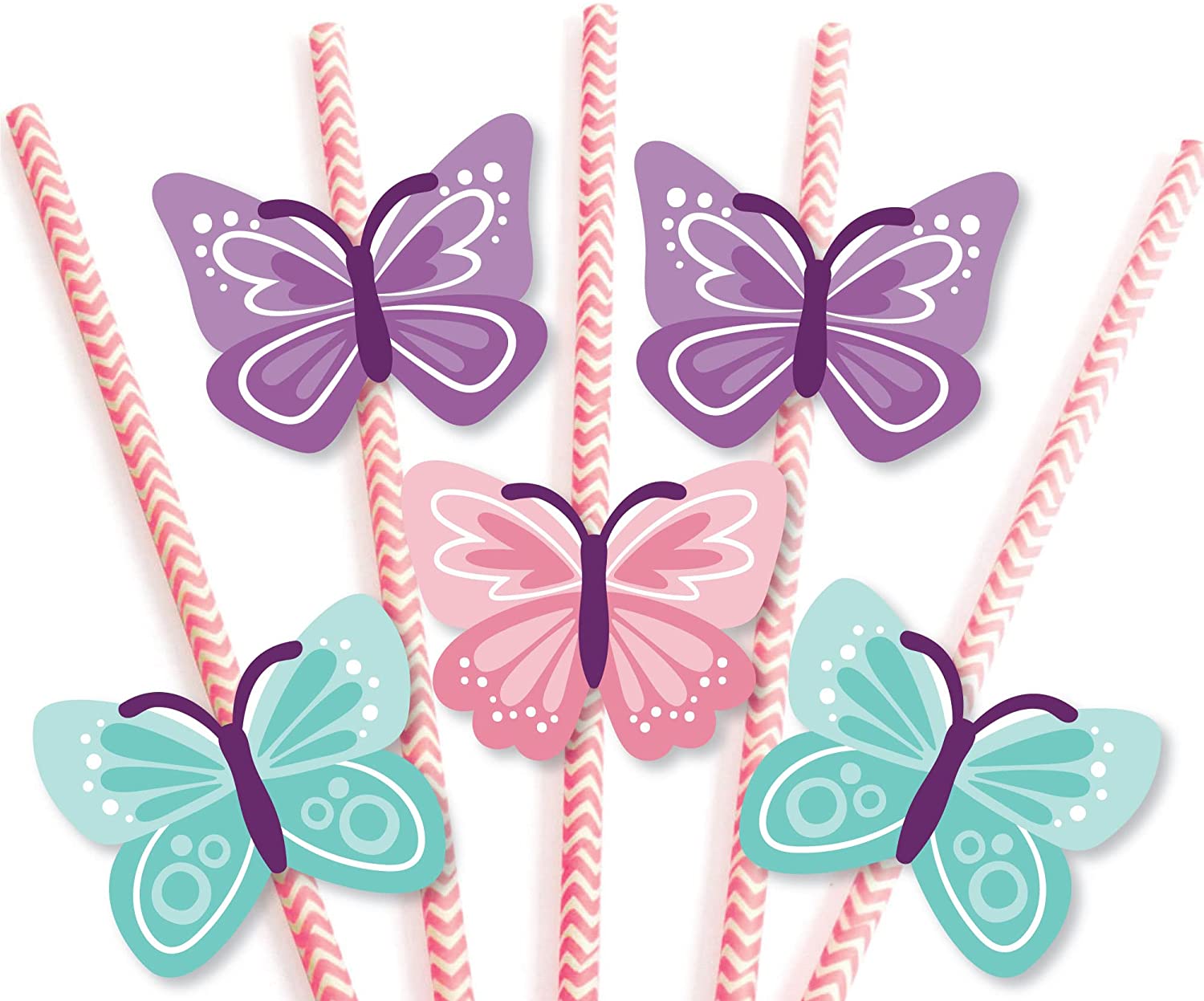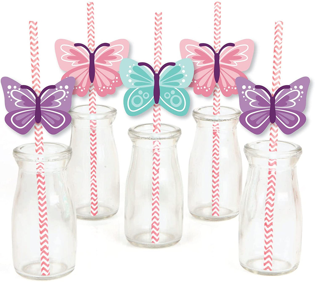 Beautiful Butterfly - Paper Straw Decor - Floral Baby Shower or Birthday Striped Decorative Straws - Set of 24 is backordered and will ship as soon as it is back in stock.