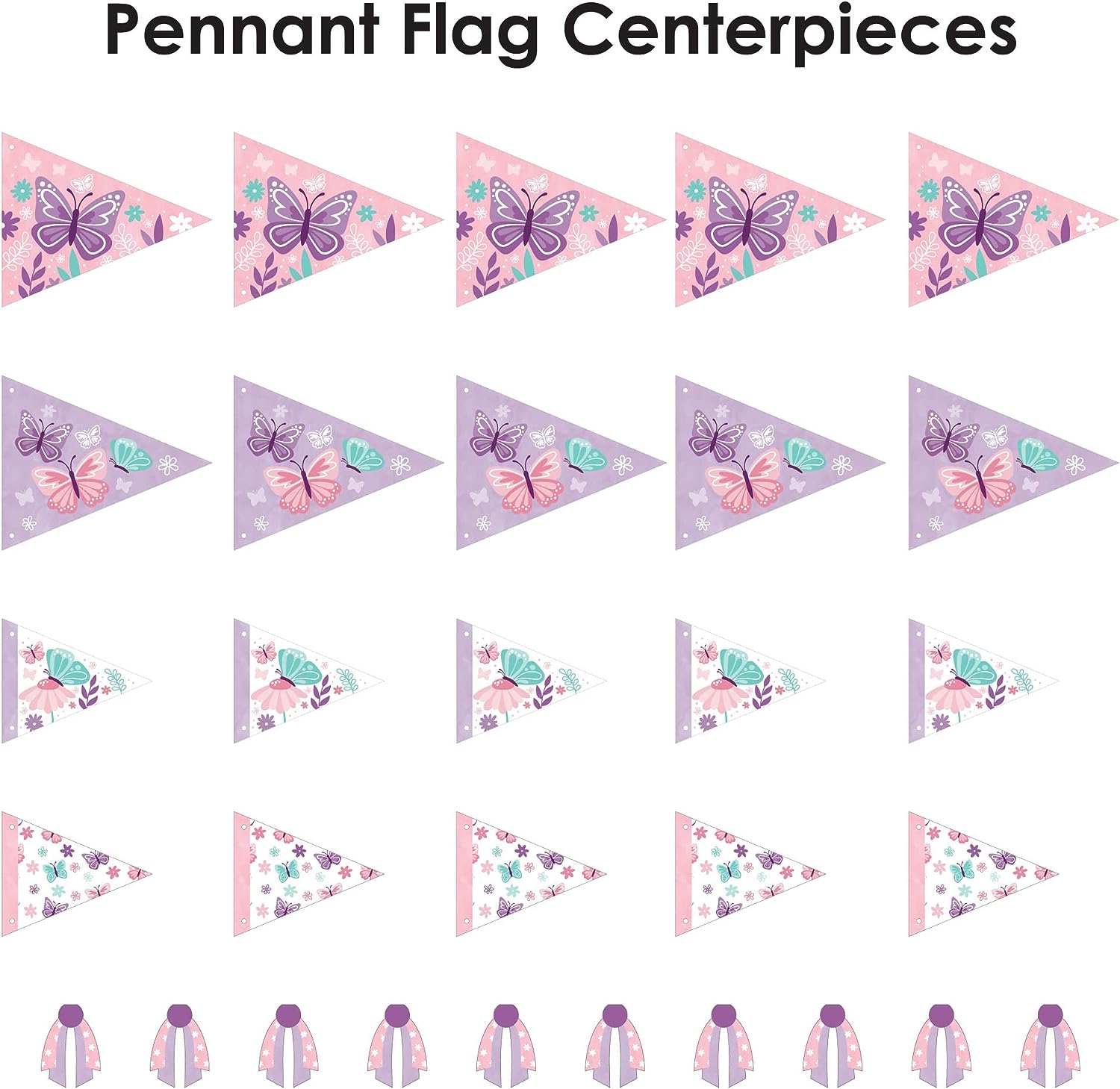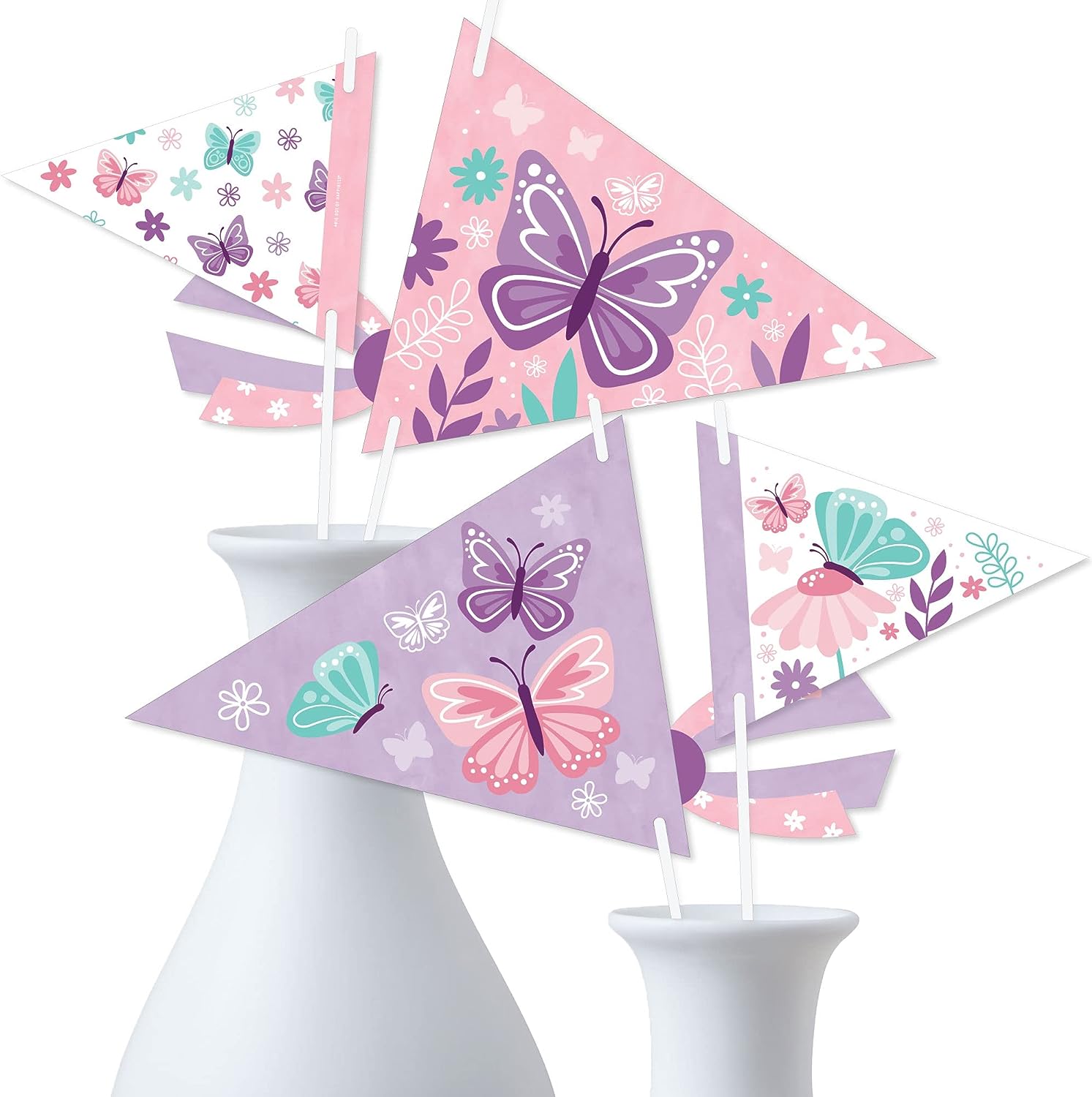 Beautiful Butterfly - Triangle Floral Baby Shower or Birthday Party Photo Props - Pennant Flag Centerpieces - Set of 20 is backordered and will ship as soon as it is back in stock.