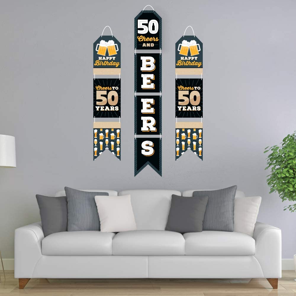 Cheers and Beers to 50 Years - Hanging Vertical Paper Door Banners - 50th Birthday Party Wall Decoration Kit - Indoor Door Decor is backordered and will ship as soon as it is back in stock.