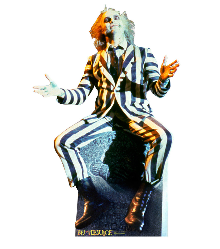 Beetlejuice Standee 65 x 41 (height x width) inches is backordered and will ship as soon as it is back in stock.