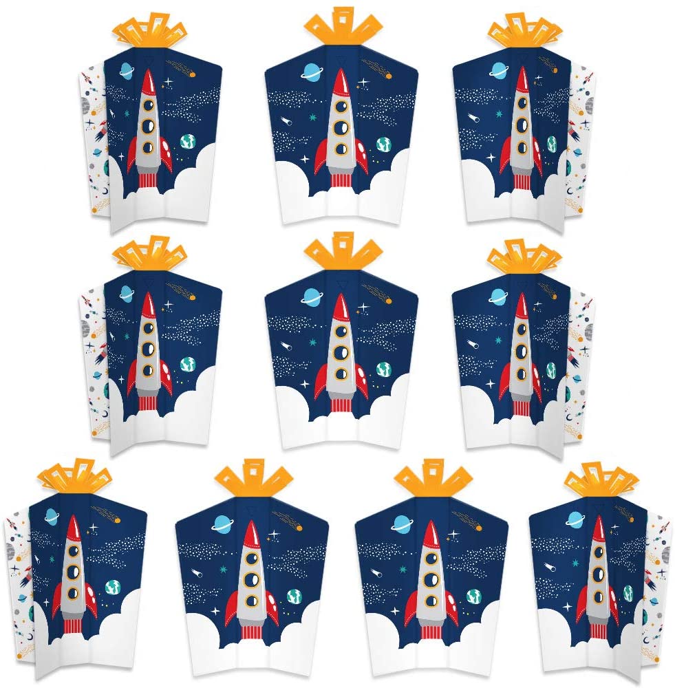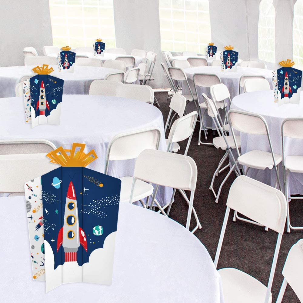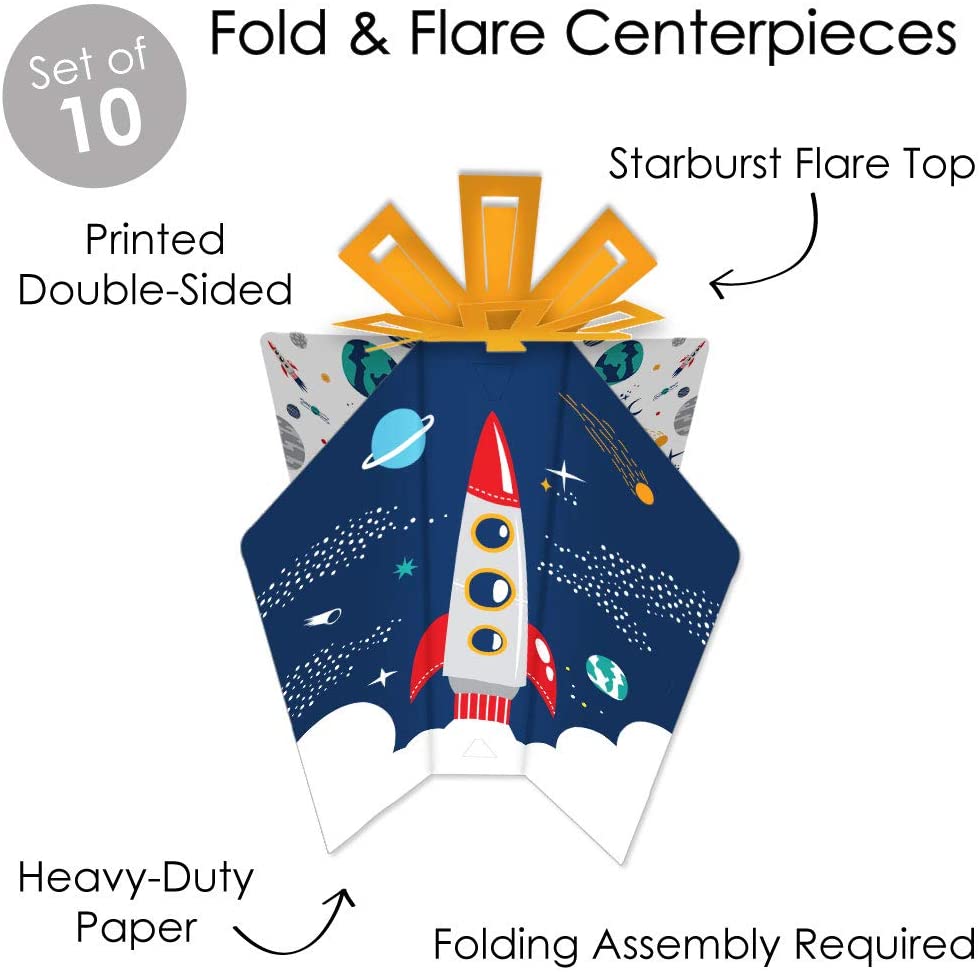 Blast Off to Outer Space - Table Decorations - Rocket Ship Baby Shower or Birthday Party Fold and Flare Centerpieces - 10 Count
