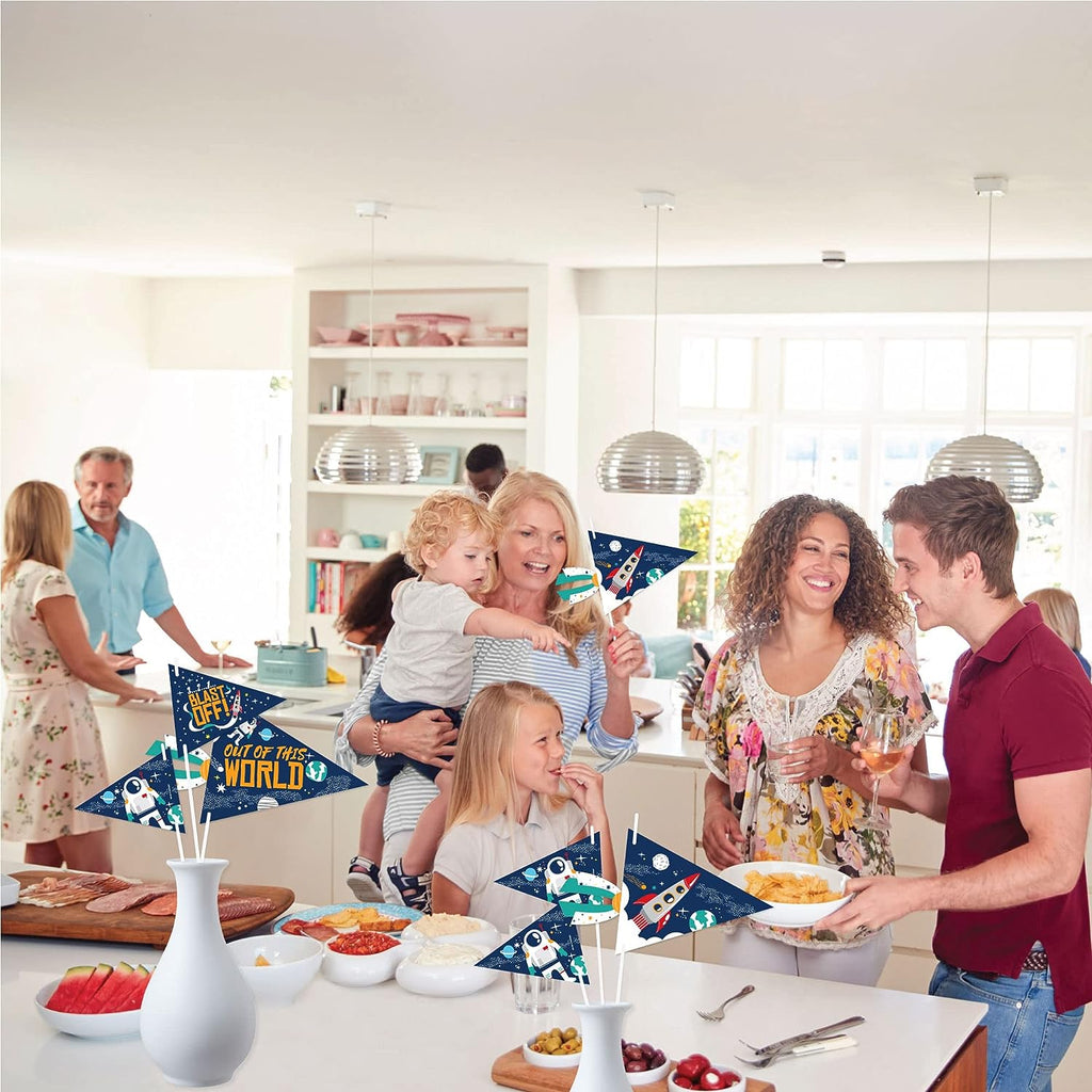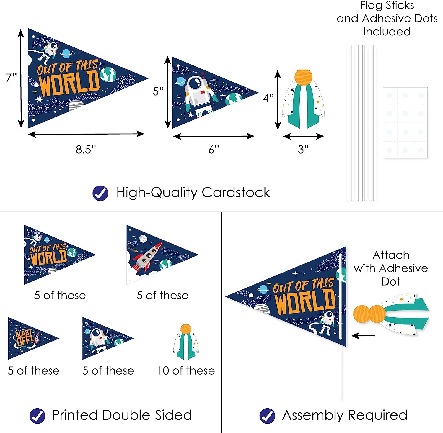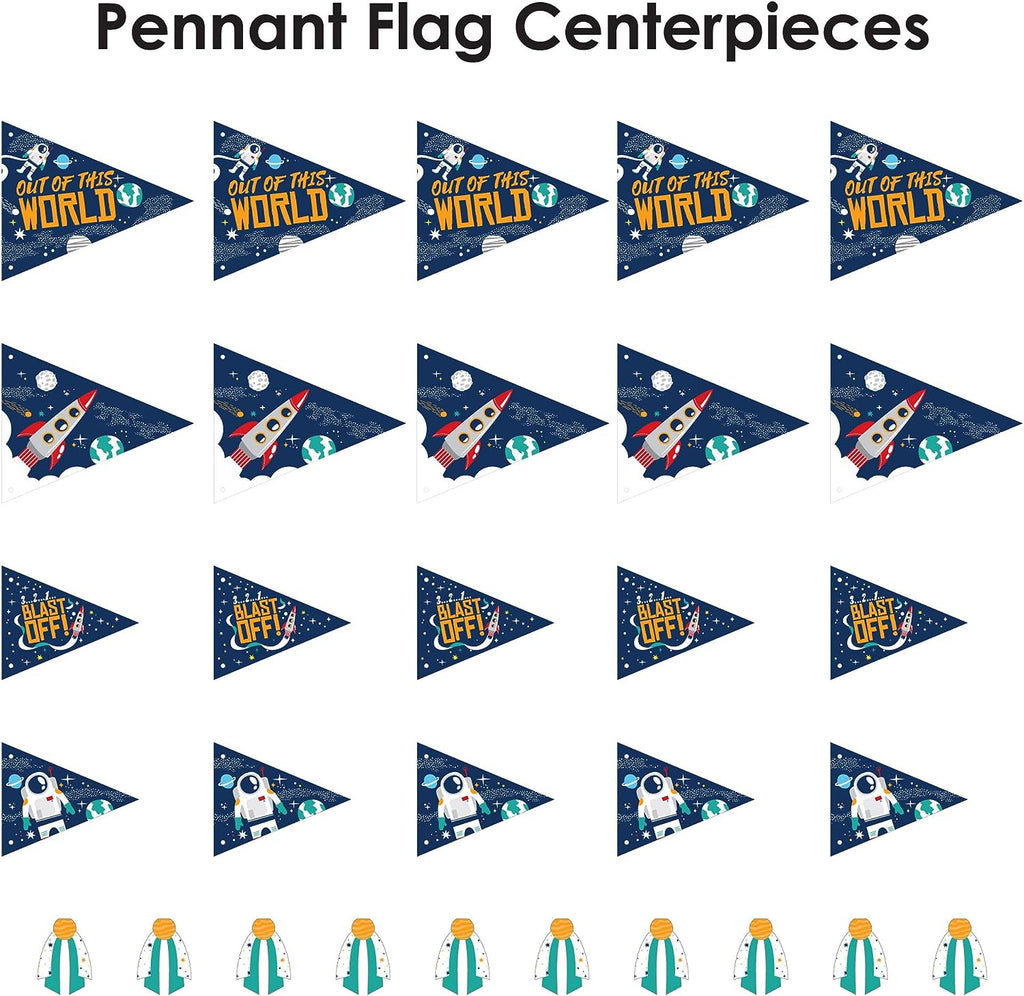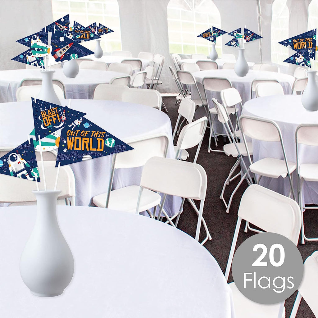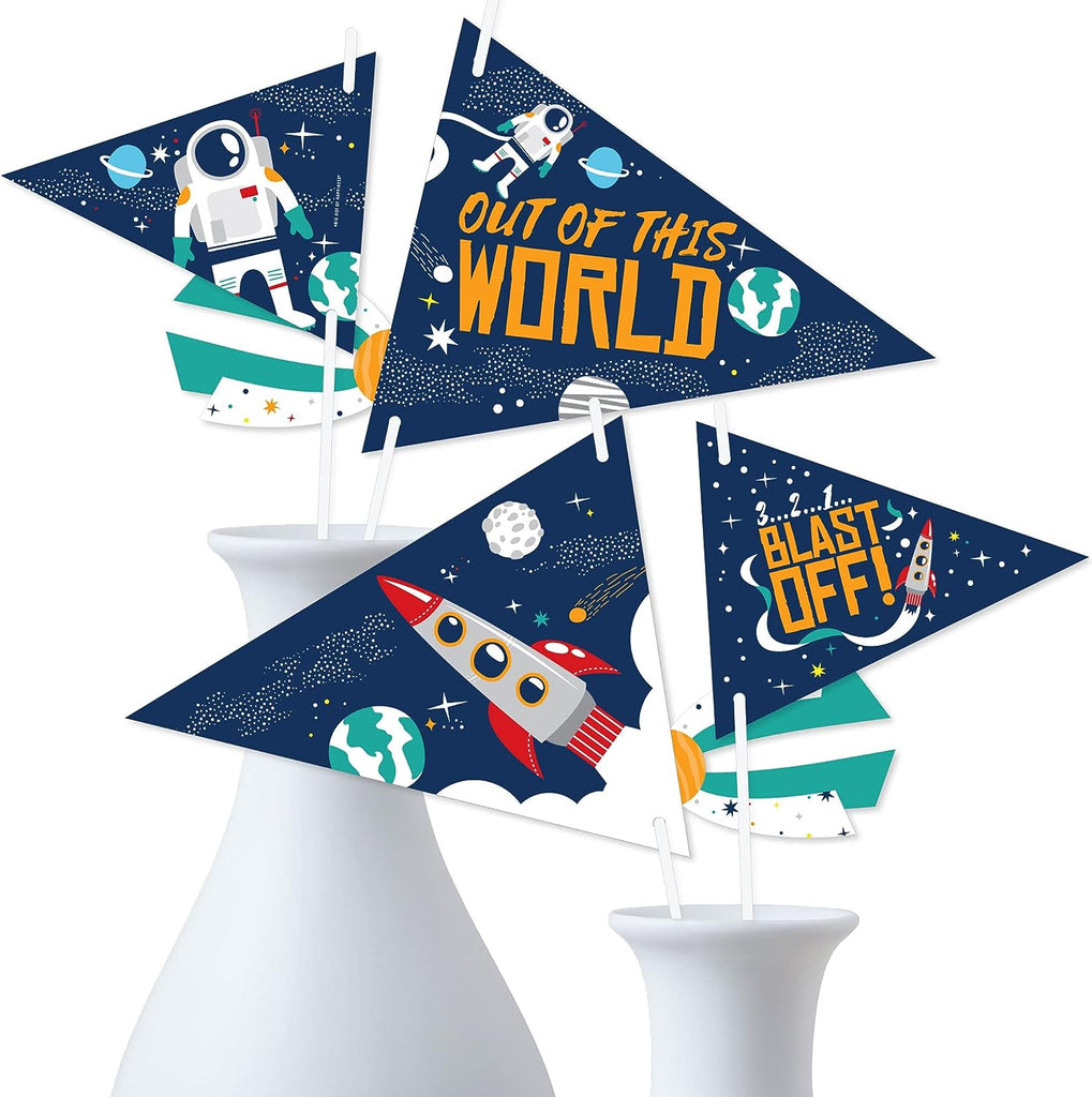 Blast Off to Outer Space - Triangle Rocket Ship Baby Shower or Birthday Party Photo Props - Pennant Flag Centerpieces - Set of 20 is backordered and will ship as soon as it is back in stock.