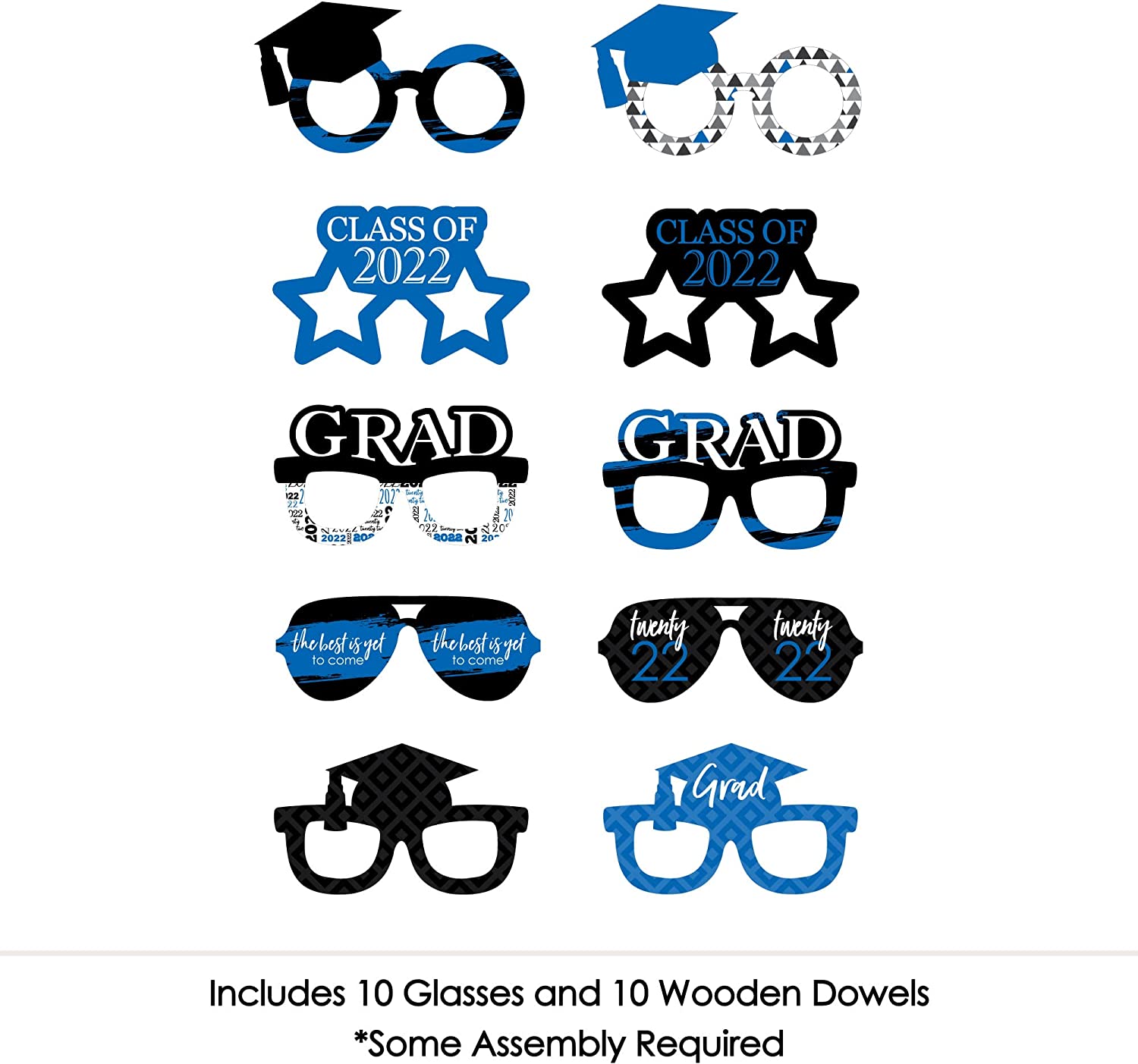 Blue Grad Glasses - Best is Yet to Come - Royal Blue 2022 Paper Card Stock Graduation Party Photo Booth Props Kit - 10 Count is backordered and will ship as soon as it is back in stock.