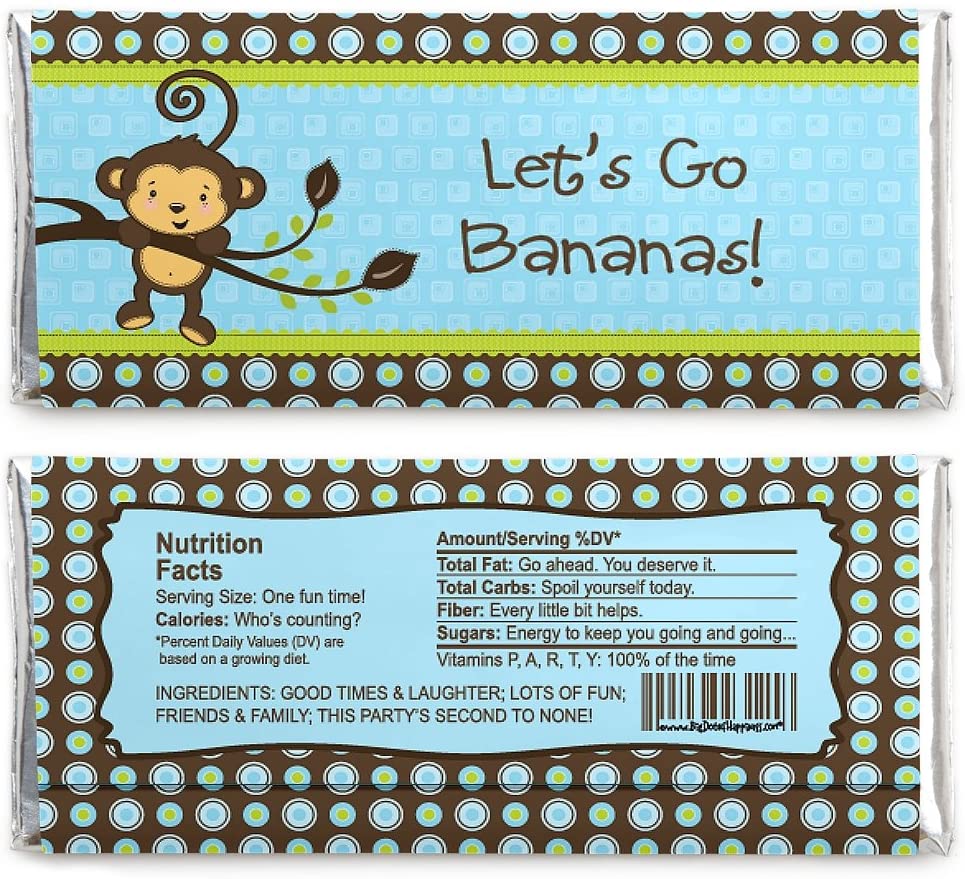Blue Monkey Boy - Baby Shower or Birthday Party Candy Bar Wrappers Party Favors - Set of 24 is backordered and will ship as soon as it is back in stock.