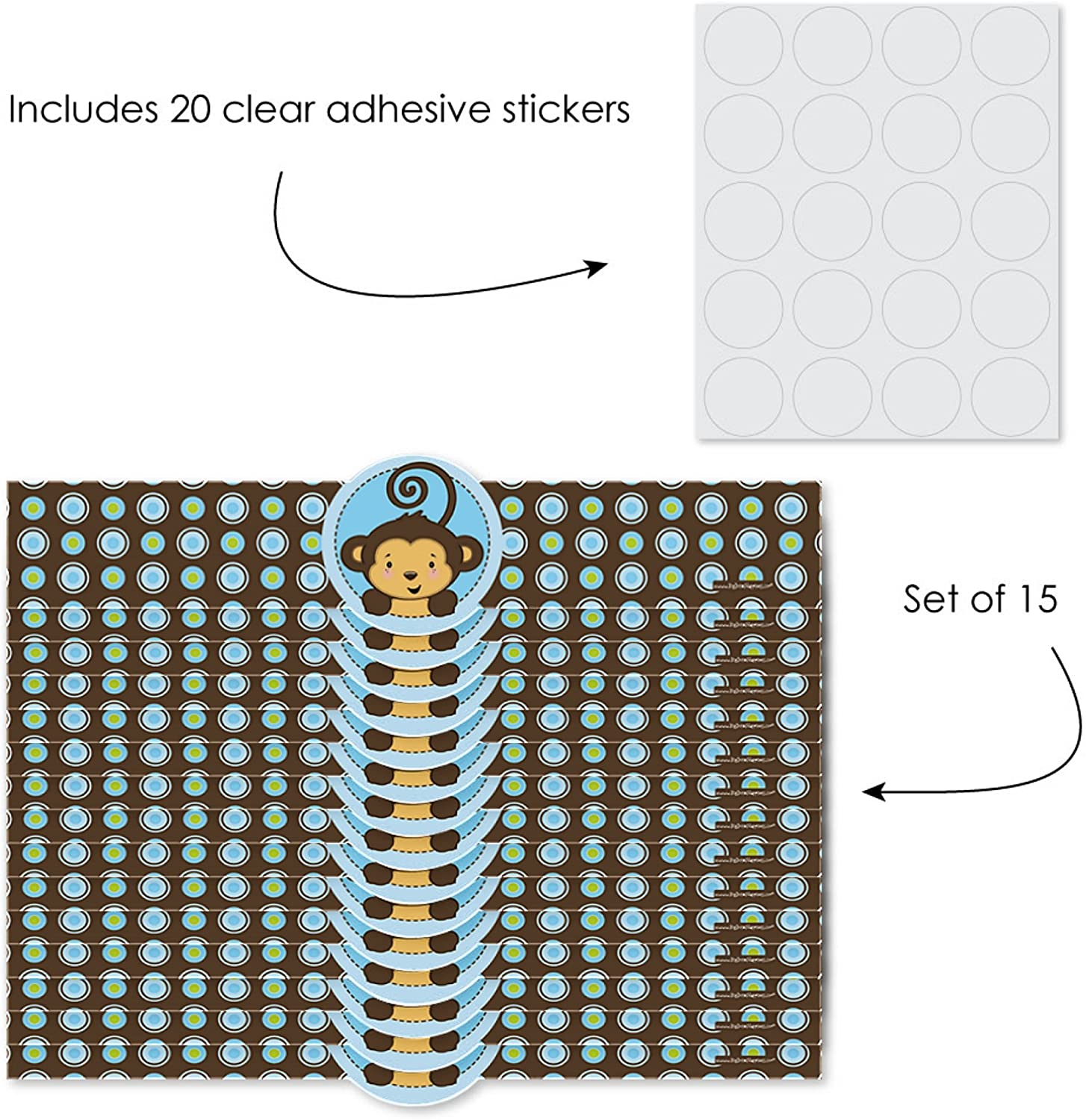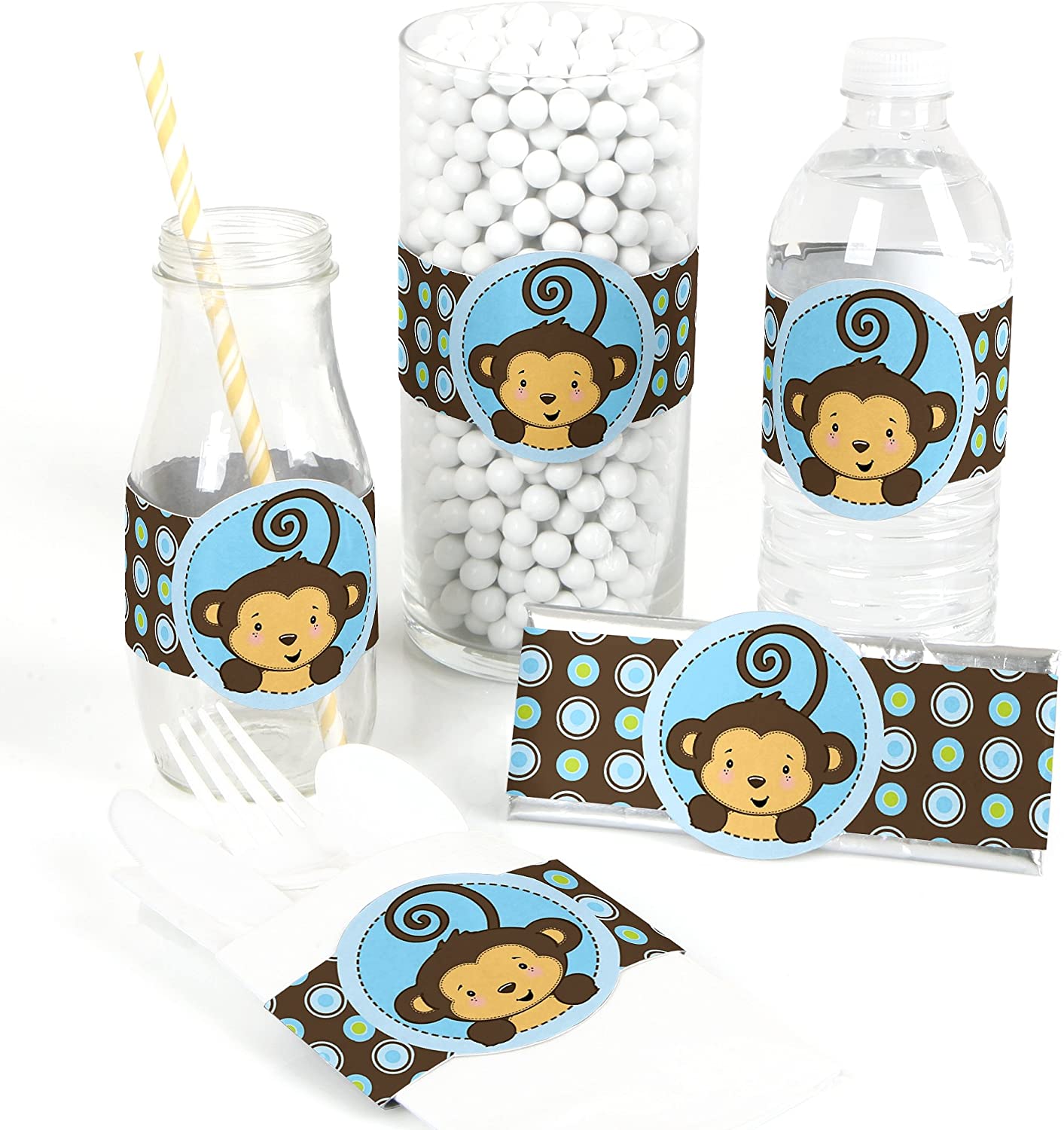 Blue Monkey Boy - DIY Party Supplies - Baby Shower or Birthday Party DIY Wrapper Favors & Decorations - Set of 15 is backordered and will ship as soon as it is back in stock.