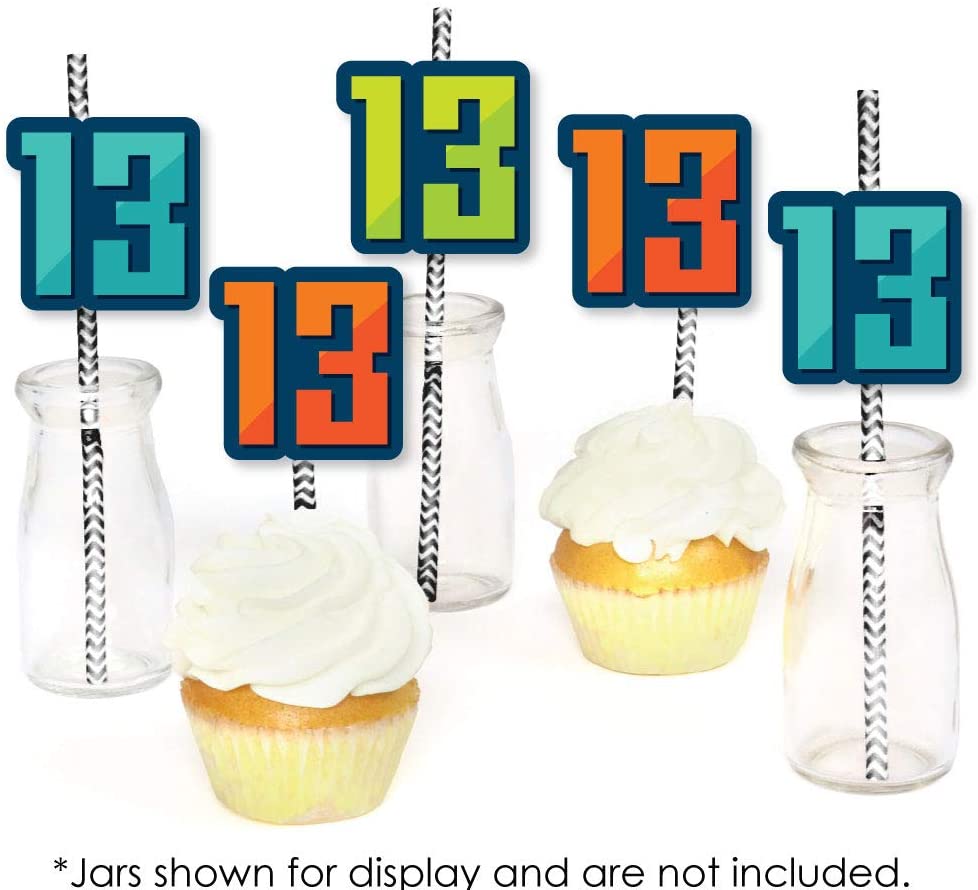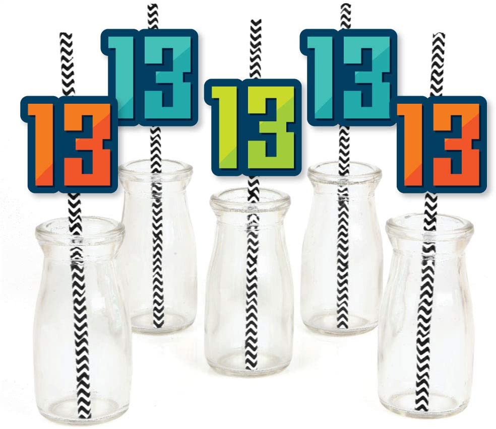 Boy 13th Birthday - Paper Straw Decor - Official Teenager Birthday Party Striped Decorative Straws - Set of 24 is backordered and will ship as soon as it is back in stock.
