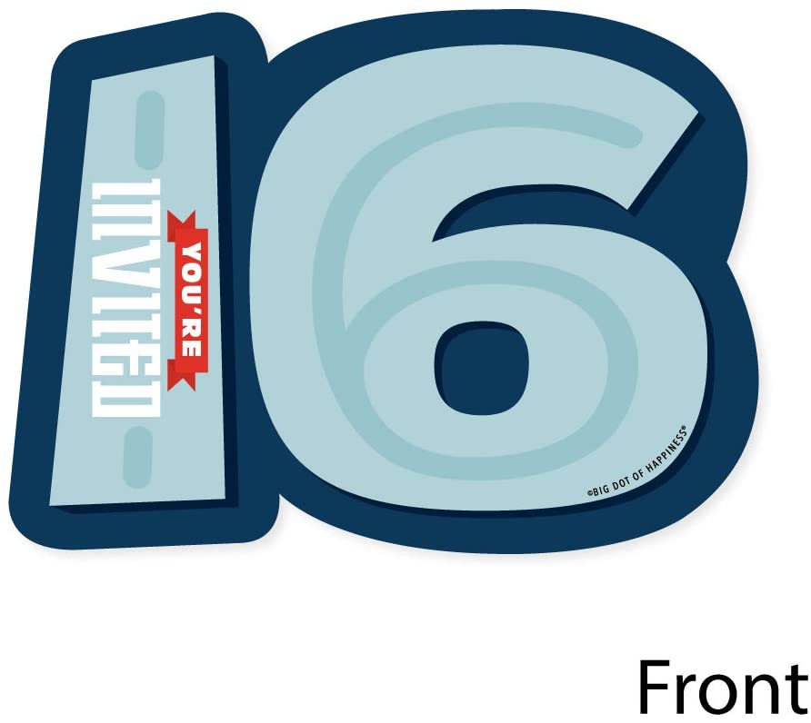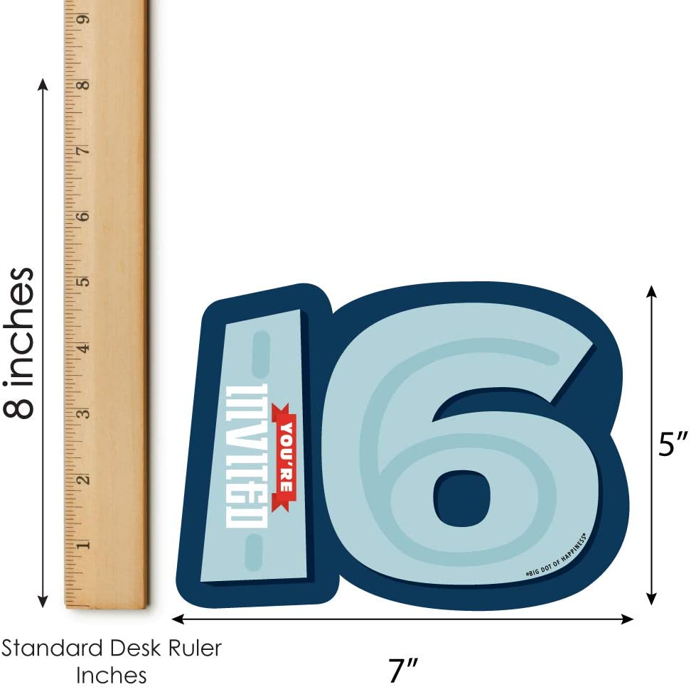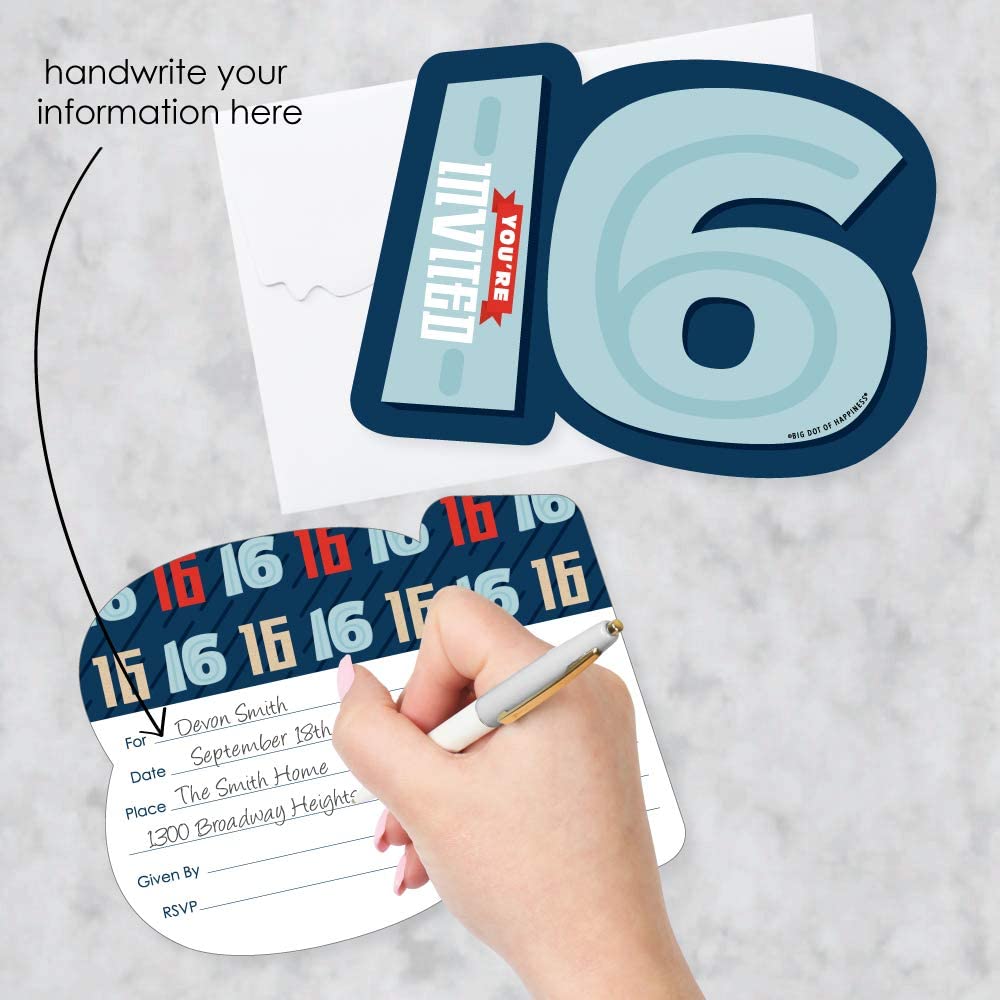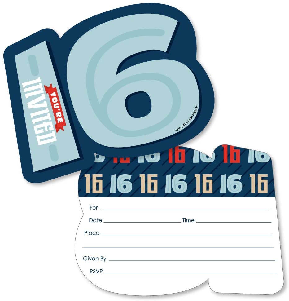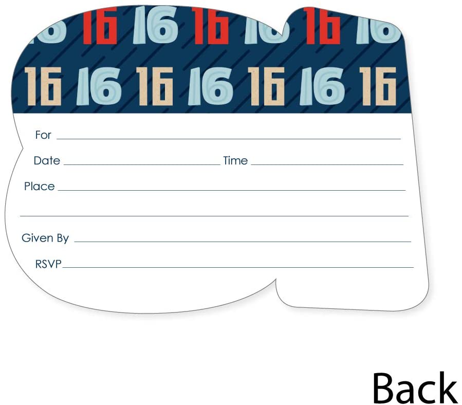 Boy 16th Birthday - Shaped Fill-In Invitations - Sweet Sixteen Birthday Party Invitation Cards with Envelopes - Set of 12
