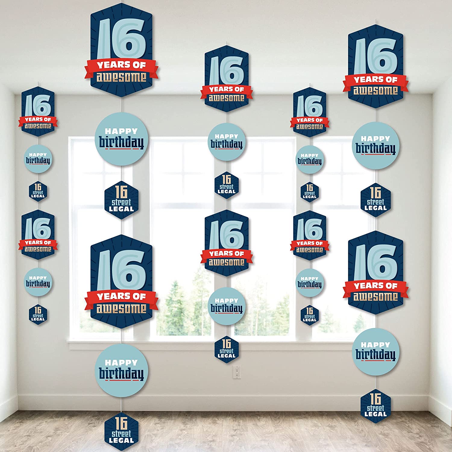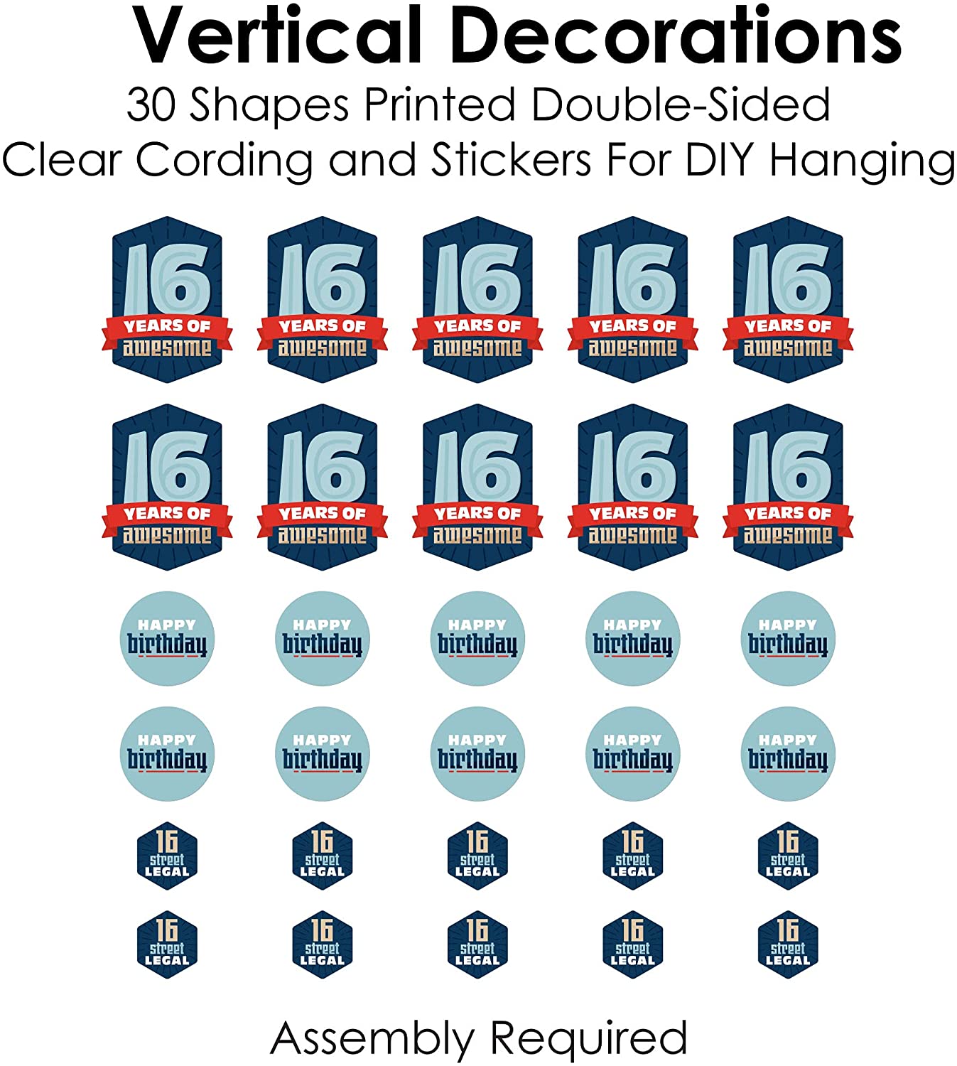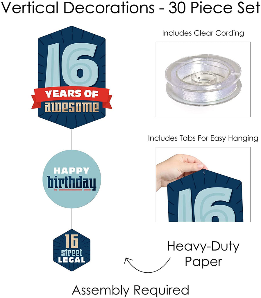 Boy 16th Birthday - Sweet Sixteen Birthday Party DIY Dangler Backdrop - Hanging Vertical Decorations - 30 Pieces is backordered and will ship as soon as it is back in stock.