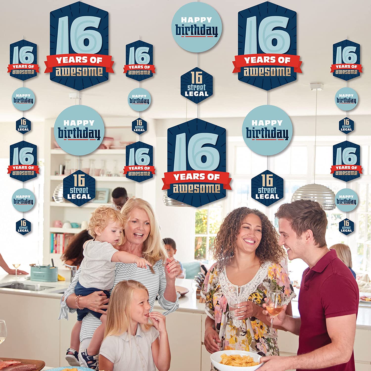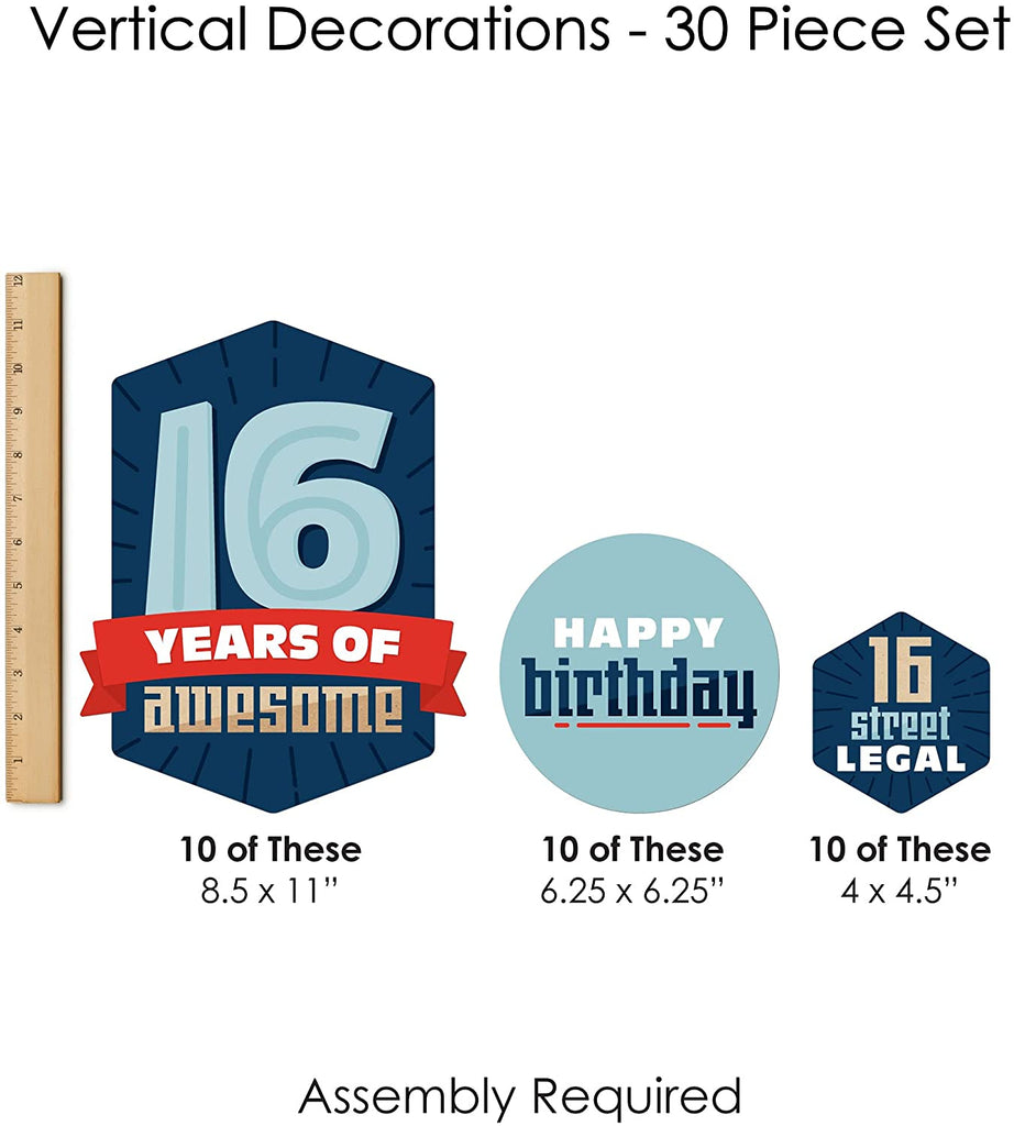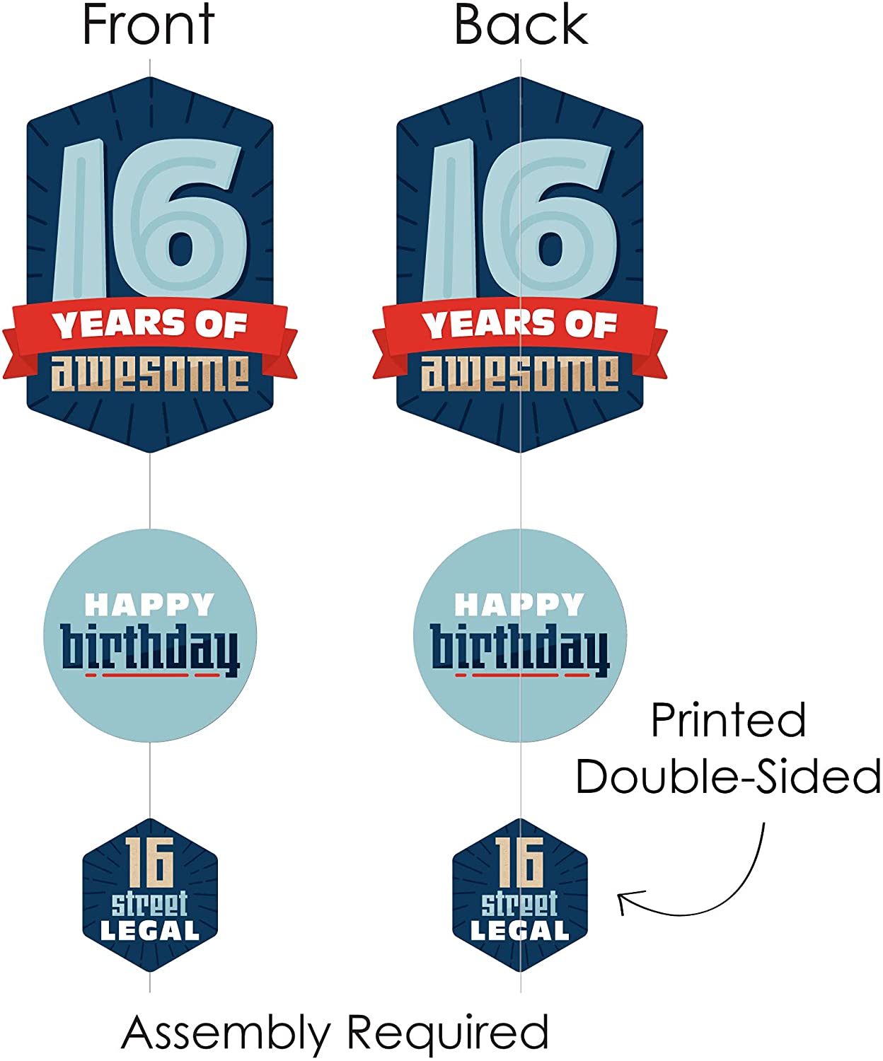 Boy 16th Birthday - Sweet Sixteen Birthday Party DIY Dangler Backdrop - Hanging Vertical Decorations - 30 Pieces is backordered and will ship as soon as it is back in stock.